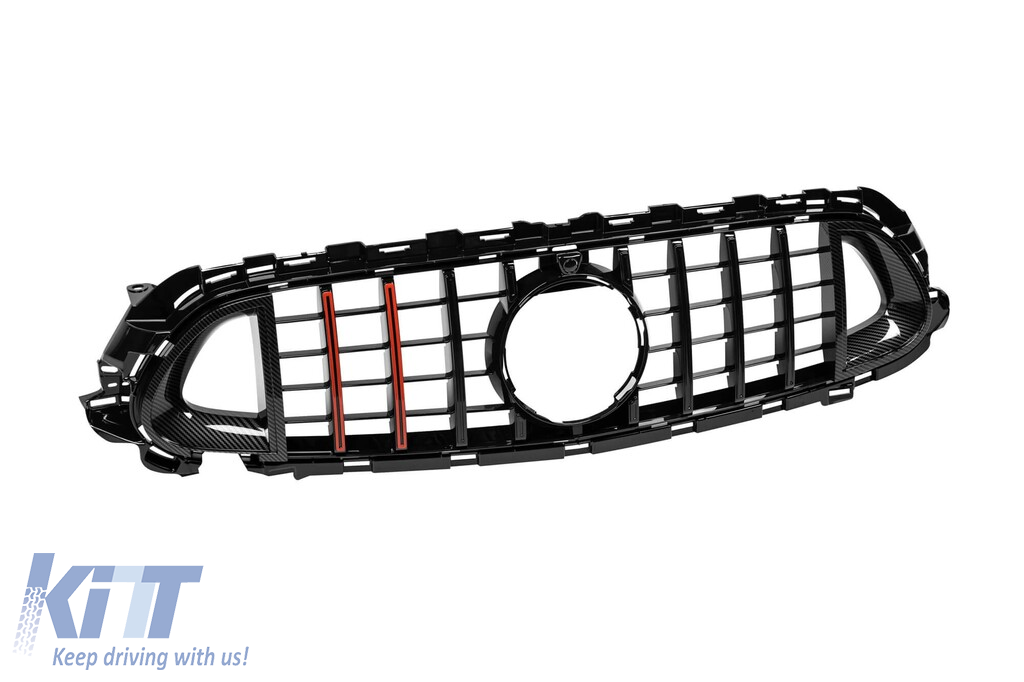 Grilă de lac negru tip Brabus cu linii roșii potrivită pentru Mercedes E-Class W213 sedan, S213 break după 2020 cu deschidere pentru cameră Performance AutoTuning