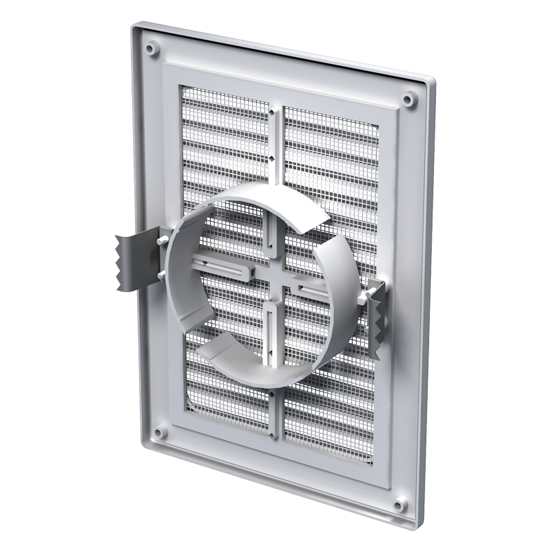 Se recomandă pentru montaj pe perete sau pe alte suprafețe compatibile, în zone unde este necesară evacuarea sau admisia aerului. Modelul este prevăzut pentru montare cu adeziv, oferind o instalare practică în proiecte rezidențiale sau tehnice.
