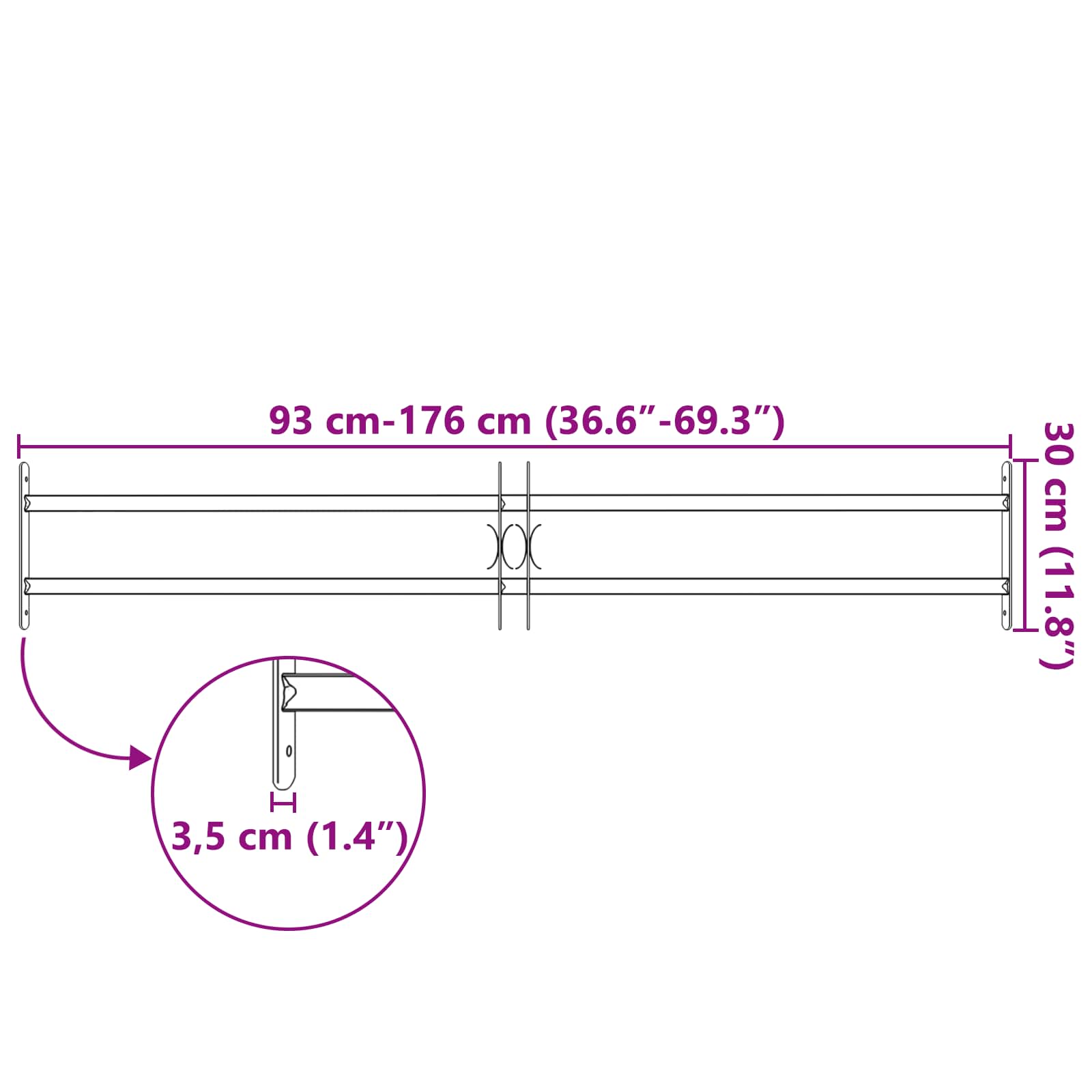 - Dimensiuni generale: 176 x 30 cm (Š x V)