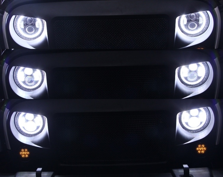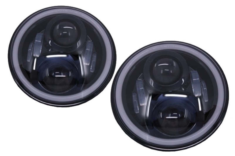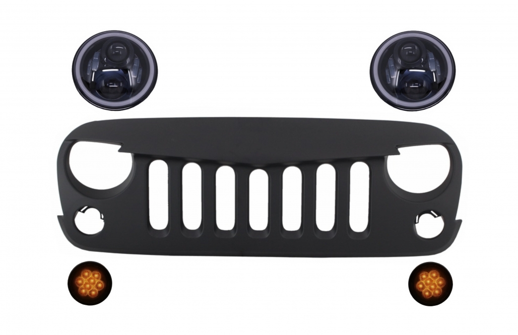 Grila Frontala cu Faruri LED CREE Angel Eye si Semnalizari compatibile cu Jeep Wrangler Rubicon JK 2007-2017 Performance AutoTuning