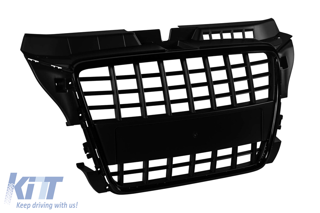 Grilă lac negru tip S3 potrivită pentru Audi A3 hatchback, Sportback, cabrio 2009-2012 fără găuri pentru senzori de parcare Performance AutoTuning