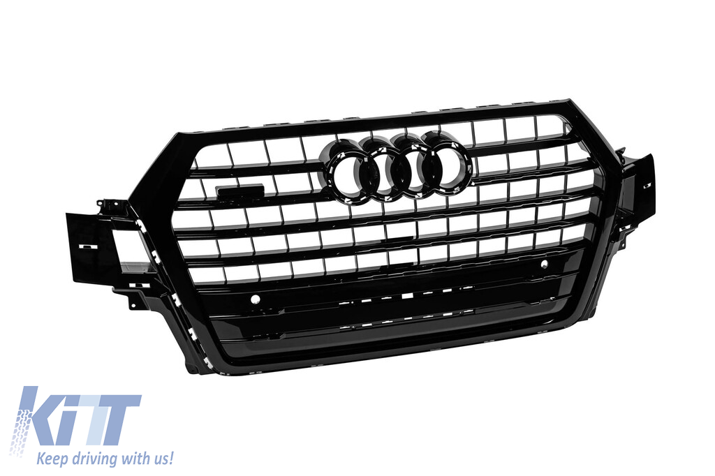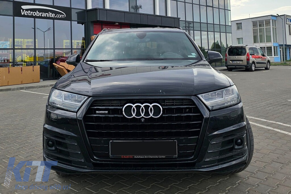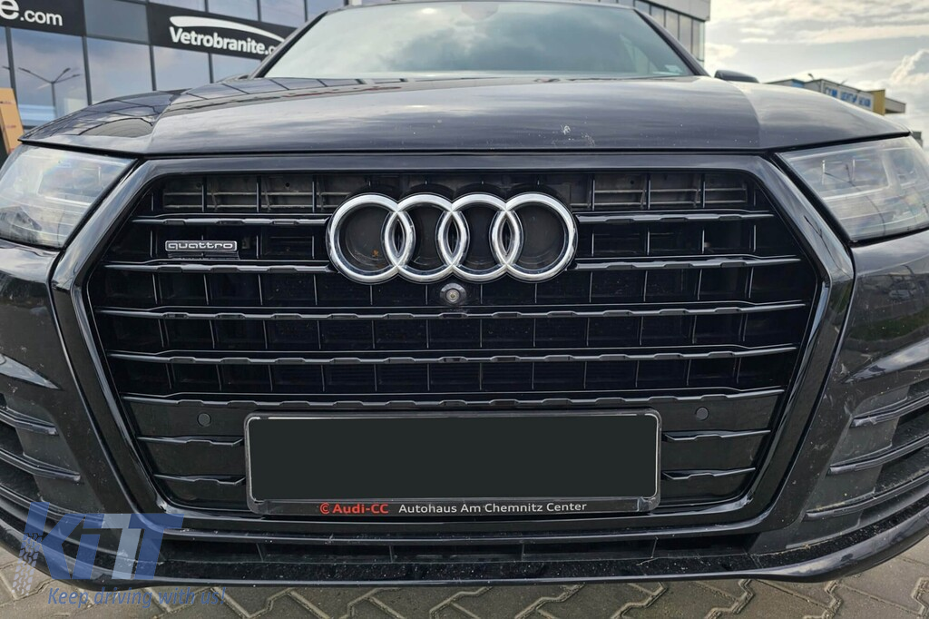 Grilă lac negru tip SQ7 potrivită pentru Audi Q7 2015-2019 cu deschideri pentru senzori de parcare Performance AutoTuning