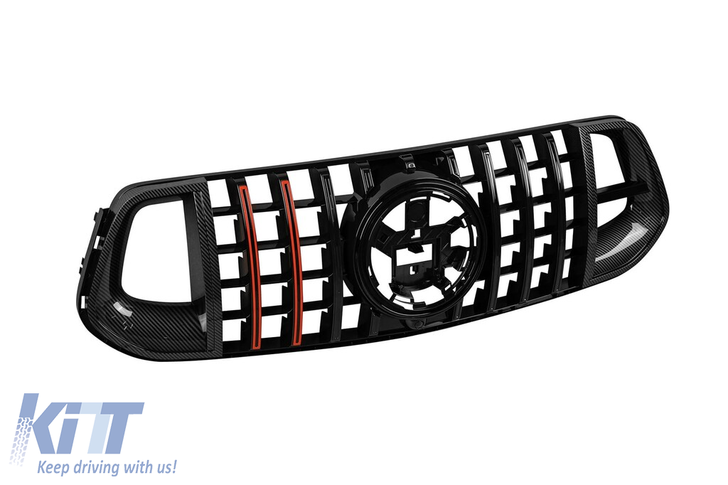 Grilă tip BS potrivită pentru Mercedes GLE SUV W167, GLE Coupe C167 2019-2023 cu deschidere pentru cameră, pentru modelul echipat cu bara de protecție frontală A Design Line, culoare carbon Performance AutoTuning