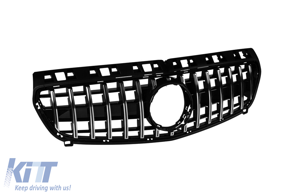 Grilă tip GT crom/neagră potrivită pentru Mercedes Clasa A W176 2013-2015 Performance AutoTuning