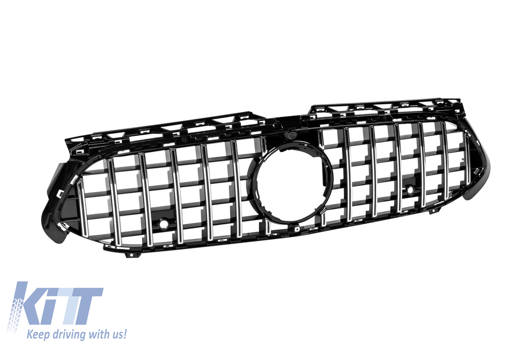 Grilă tip GT crom/neagră, potrivită pentru Mercedes Clasa A W177 după 2023, cu deschidere pentru cameră Performance AutoTuning
