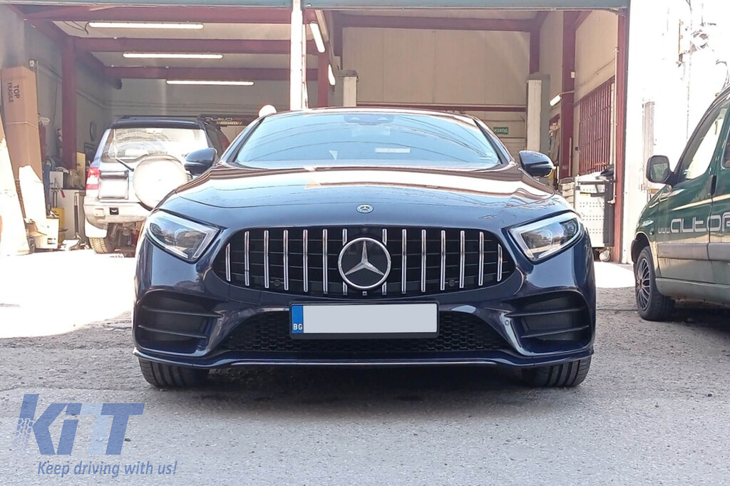 Grilă tip GT crom/neagră, potrivită pentru Mercedes CLS C257 după 2019, cu deschidere pentru cameră Performance AutoTuning
