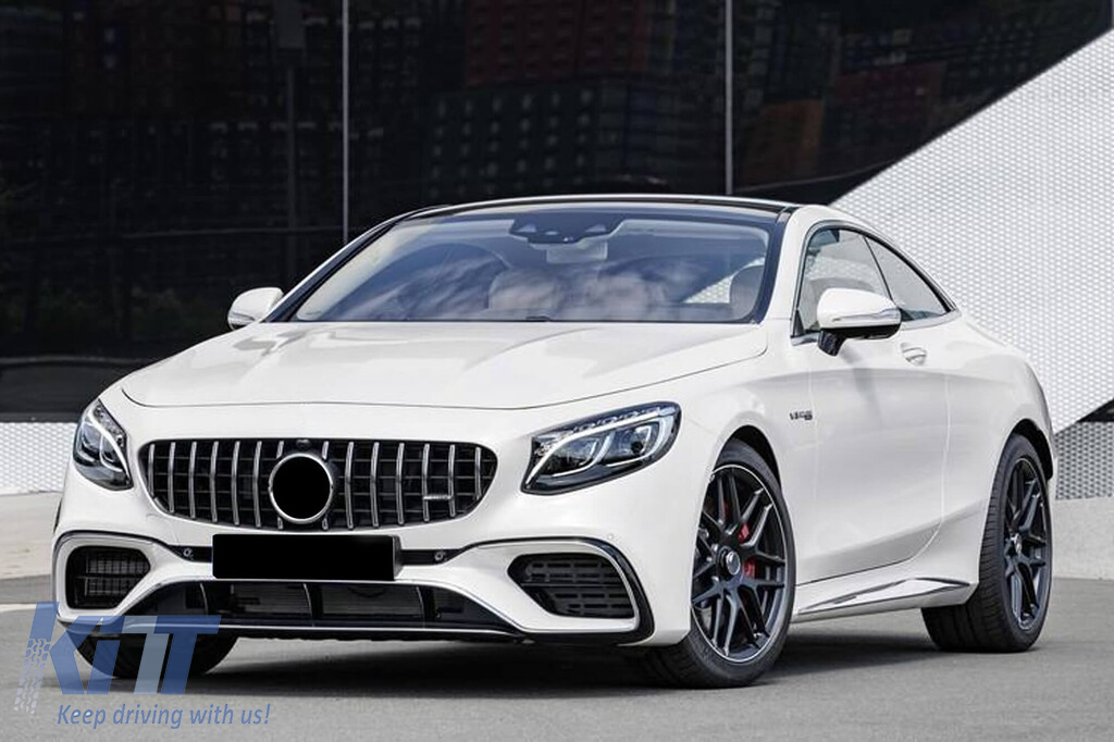 Grilă tip GT crom/neagră potrivită pentru Mercedes S-Class coupe/cabriolet C217/A217 2014-2020, potrivită pentru toate modelele, cu excepția S63/S65 Performance AutoTuning