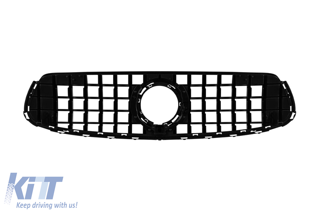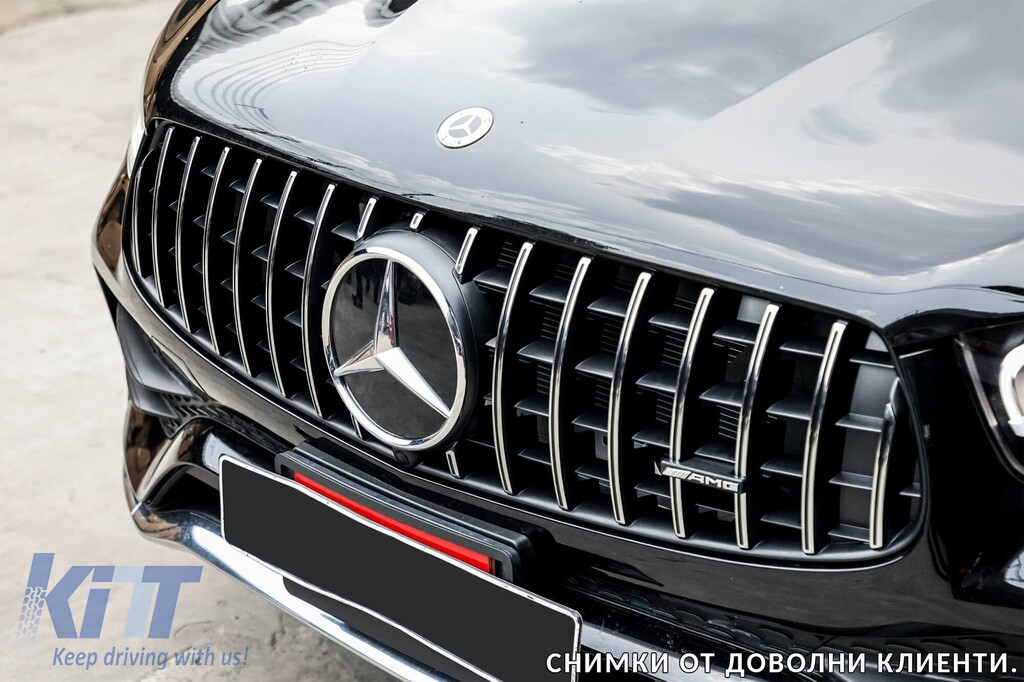 Grilă tip GT crom/negru, potrivită pentru Mercedes GLC SUV X253, GLC Coupe C253 după 2019, cu deschidere pentru cameră Performance AutoTuning