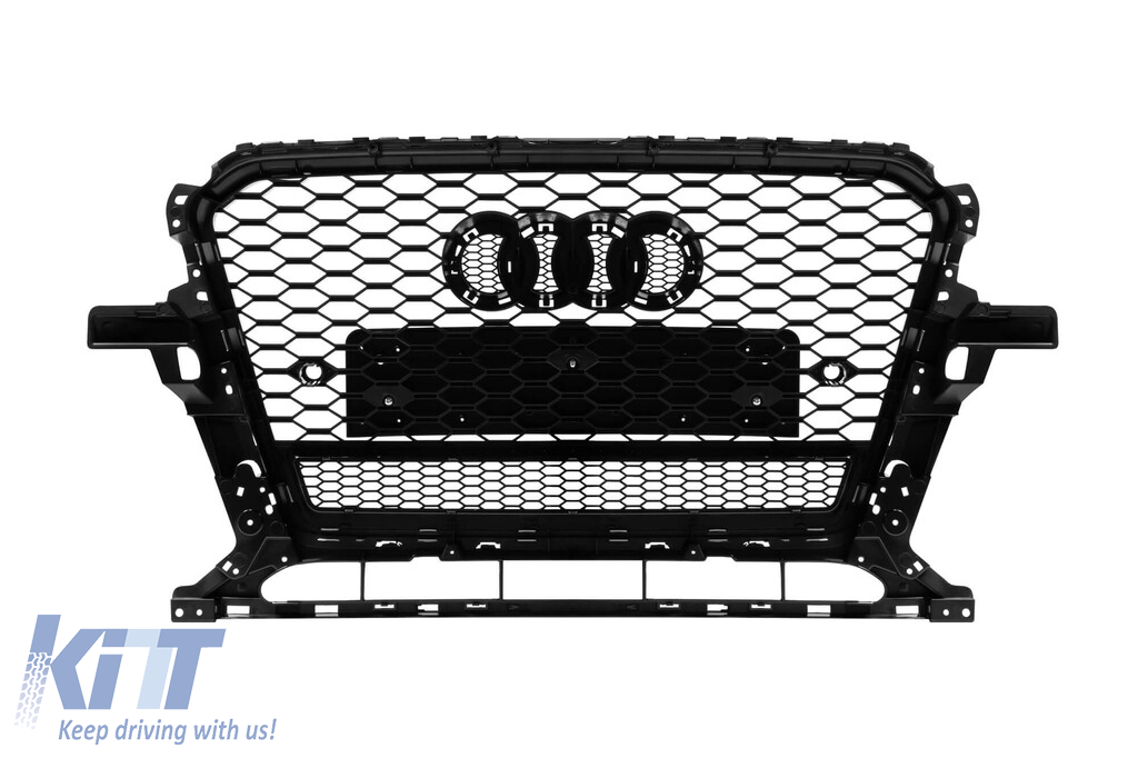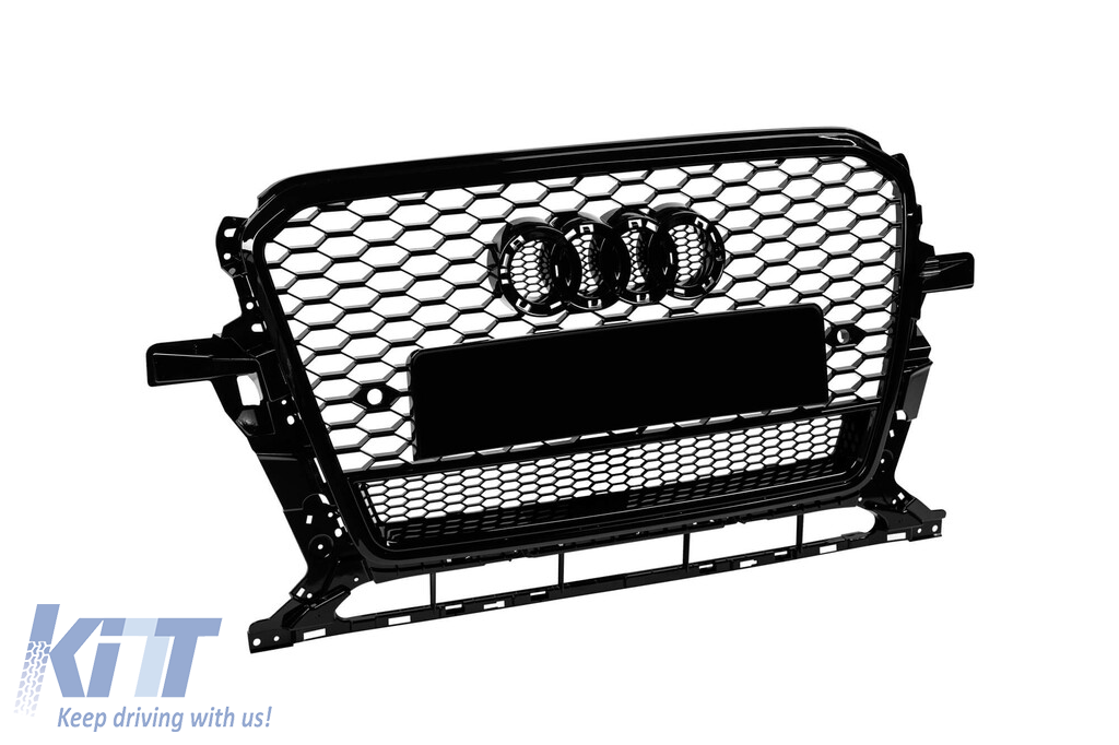 Grilă tip RS cu lac negru, potrivită pentru Audi Q5 2012-2015, cu deschideri pentru senzori de parcare Performance AutoTuning