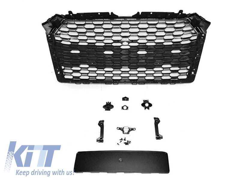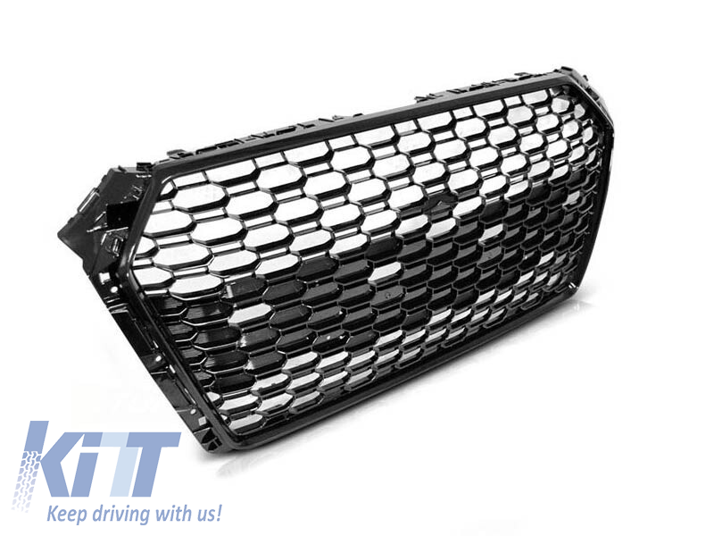 Grilă tip RS4 vopsită în negru, potrivită pentru Audi A4 B9 sedan, break 2015-2019 cu deschideri pentru senzori de parcare Performance AutoTuning