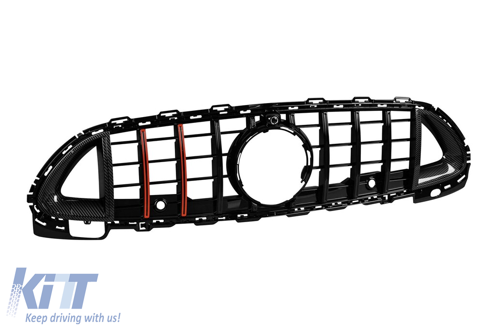 Grilaj din lac negru tip Brabus cu linii roșii, potrivit pentru Mercedes C-Class W206, S206 după 2022, potrivit pentru bara de sport A Design Performance AutoTuning