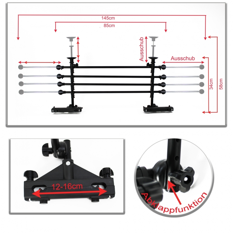 Das Gepäckraumgitter der Marke Tenzo-R bietet eine universelle Lösung für den sicheren Transport von Hunden und Gepäckstücken in Ihrem Fahrzeug. Mit einstellbaren Maßen von 34-58 cm in der Höhe und 85-145 cm in der Breite passt es sich flexibel an verschiedene Fahrzeugtypen an, darunter Pkw, SUV und Kombis.Die Installation gestaltet sich mühelos und werkzeugfrei, dank des durchdachten Designs, das eine einfache und sichere Befestigung an den Kopfstützen ermöglicht. Dies gewährleistet nicht nur eine stabile Positionierung, sondern auch eine schnelle Anpassung an Ihre individuellen Bedürfnisse. Bitte beachten Sie, dass die Kopfstützenhalterungen nur für einen Strebenabstand von 12,3 cm bis 15,6 cm geeignet sind.Das Gepäckraumgitter von Tenzo-R wurde mit Blick auf die Sicherheit von Haustieren und Insassen entwickelt. Es schafft eine zuverlässige Barriere im Fahrzeug, die sowohl für den Schutz der Ladung als auch für die Sicherheit der Mitfahrer sorgt.Neu und original verpacktAngaben zur ProduktsicherheitHersteller: Carparts-Online GmbHBrauckstr. 47, 58454 WittenKontakt: info@carparts-online.deSicherheitshinweise:Sicherheitshinweis für Verpackung:Es besteht Verletzungsgefahr an scharfen Papier-, Karton- oder Folienkanten sowie spitzen Metallklammern.Verpackungsmaterial ist kein Spielzeug. Erstickungsgefahr für Kinder oder Tiere.Sicherheitshinweis für das Produkt:Der Artikel könnte scharfkantig sein. Es besteht VerletzungsgefahrWir empfehlen die Montage durch einen KFZ-Fachbetrieb