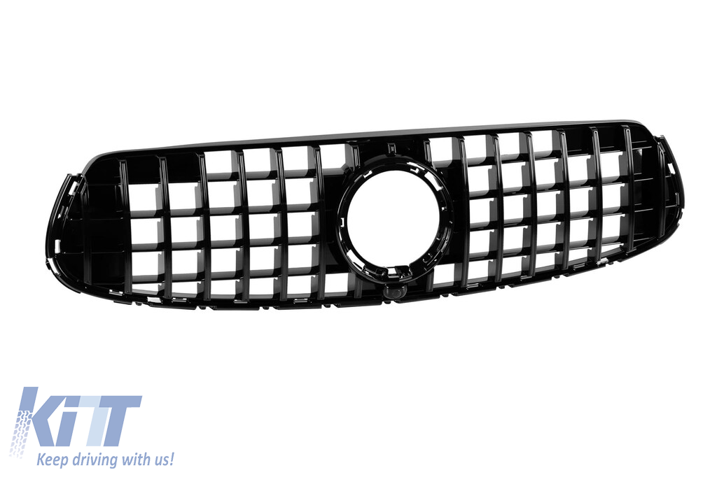 Grilaj tip GT lacuit negru potrivit pentru bara de protecție frontală A Design a Mercedes GLC SUV X253, GLC Coupe C253 2019-2022 cu deschidere pentru cameră Performance AutoTuning