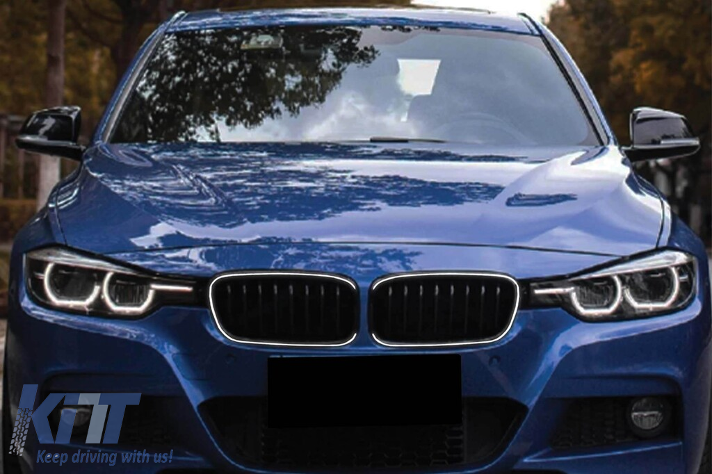 Grile de rinichi iluminate stil Iconic Glow cu lamele simple potrivite pentru BMW Seria 3 F30, F31 2012-2019, negru lucios Performance AutoTuning