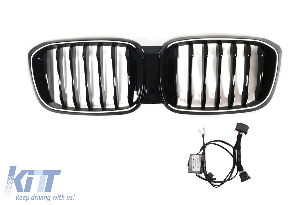 Grile de rinichi iluminate stil Iconic Glow cu lamele unice și design LCI potrivite pentru BMW X3 G01 2018-2022, negru lucios Performance AutoTuning