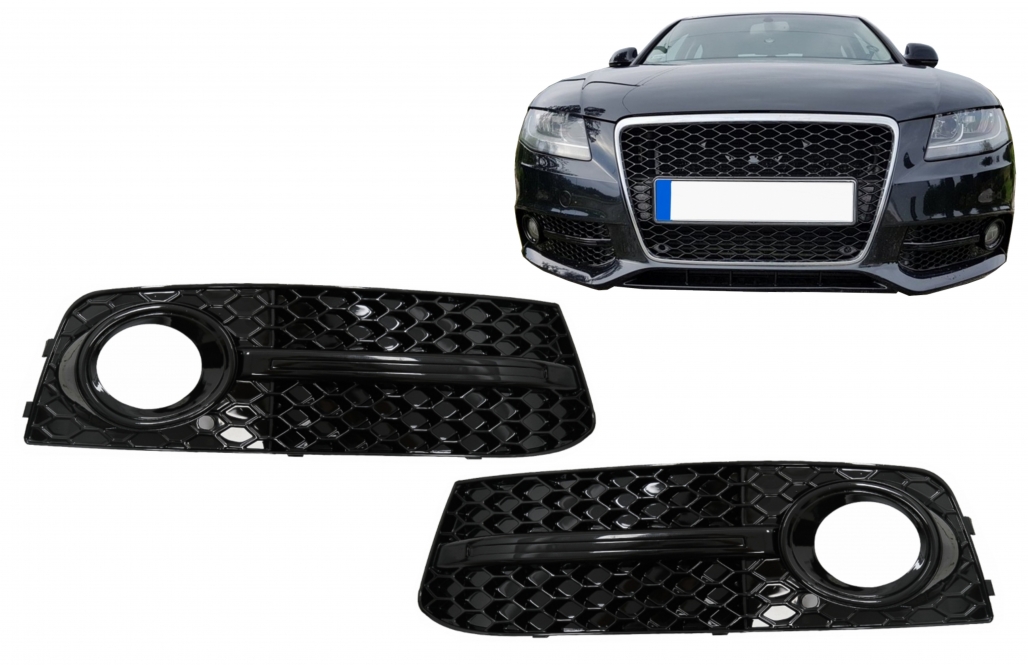 Grile Laterale Bara Fata AUDI A4 B8 8K (2007-2011) S4 Design Negru Lucios Performance AutoTuning