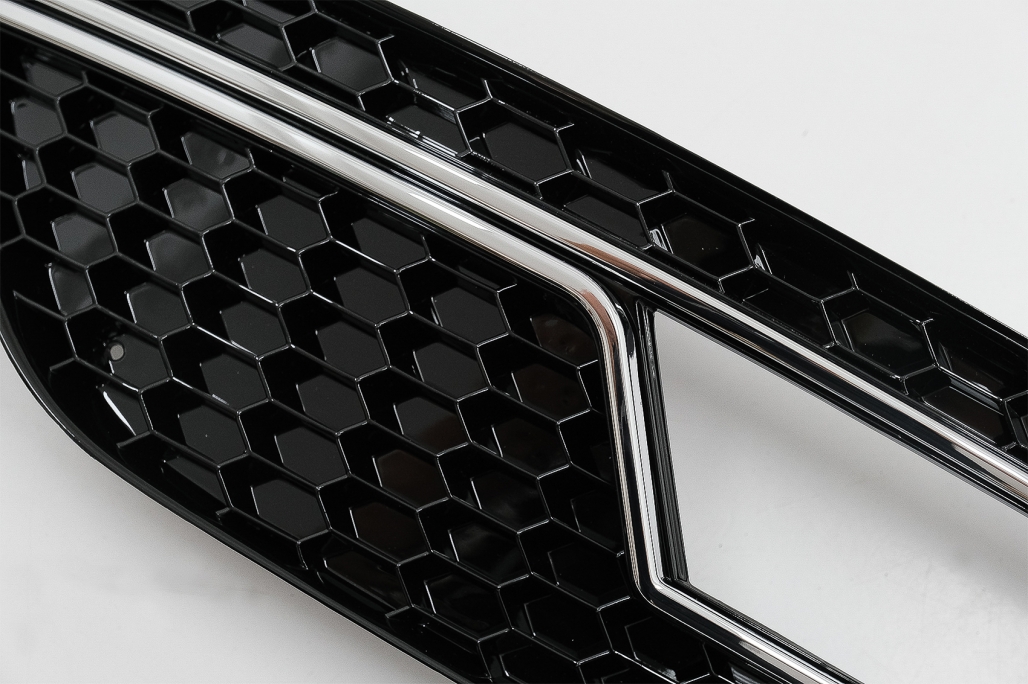 Aceste grile laterale Audi A4 B8 facelift sunt fabricate din plastic de buna calitate, rezistent la utilizarea zilnica si potrivit pentru inlocuirea pieselor uzate sau pentru un upgrade estetic. Designul tip fagure completeaza perfect linia sportiva a barei fata si contribuie la un aspect apropiat de modelele RS.