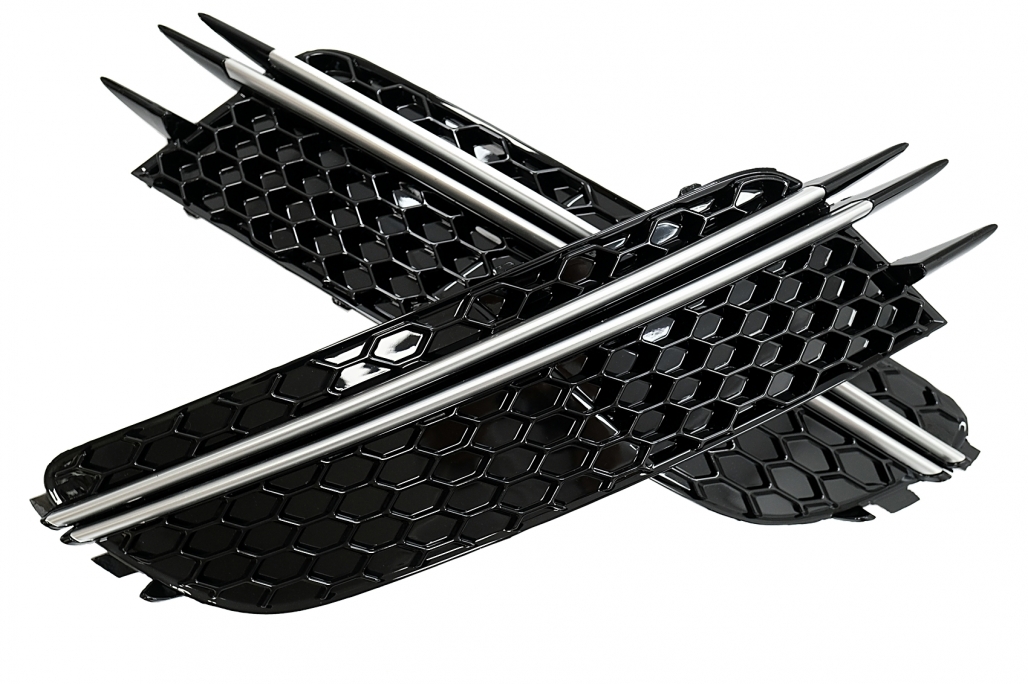 Grilele sunt destinate inlocuirii pieselor existente de pe bara fata standard. Pentru o fixare corecta si un rezultat estetic optim, recomandam montajul intr-un service auto autorizat. Instructiunile de instalare nu sunt incluse in pachet.