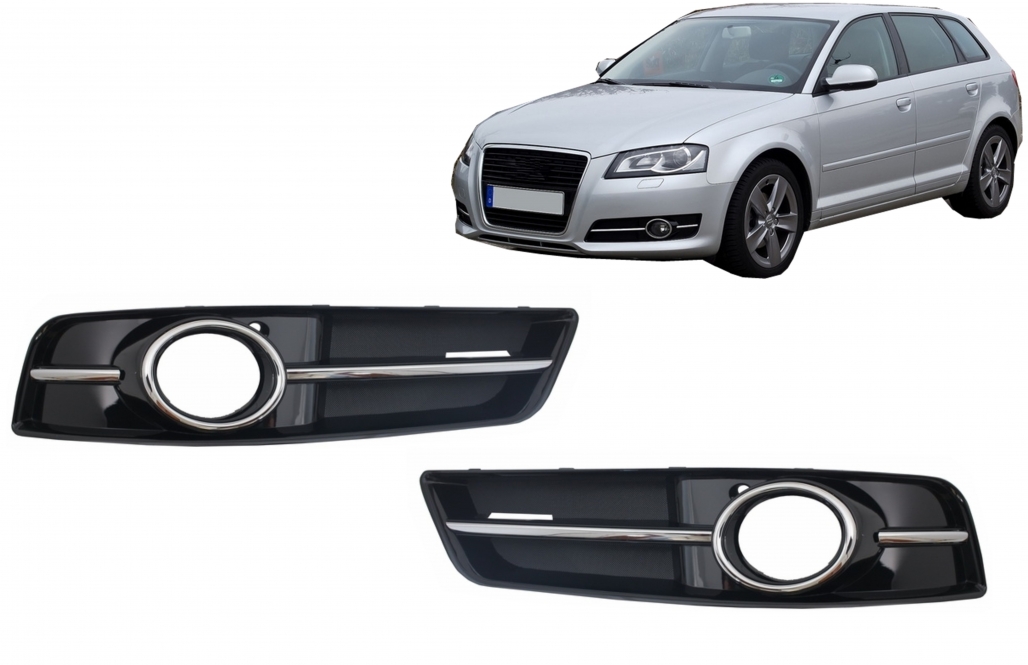 Aceste grile proiectoare Audi A3 sunt compatibile cu Audi A3 Facelift 8P1 (2008-2012), Audi A3 Sportback Facelift 8PA (2008-2013) și Audi A3 Cabriolet Facelift 8P7 (2008-2012), pentru versiuni cu bară standard, conform informațiilor furnizate. Se recomandă verificarea compatibilității înainte de comandă, în funcție de echiparea mașinii.