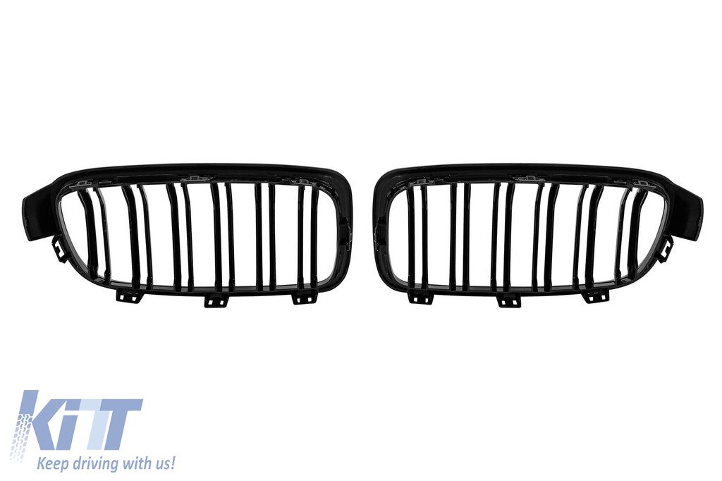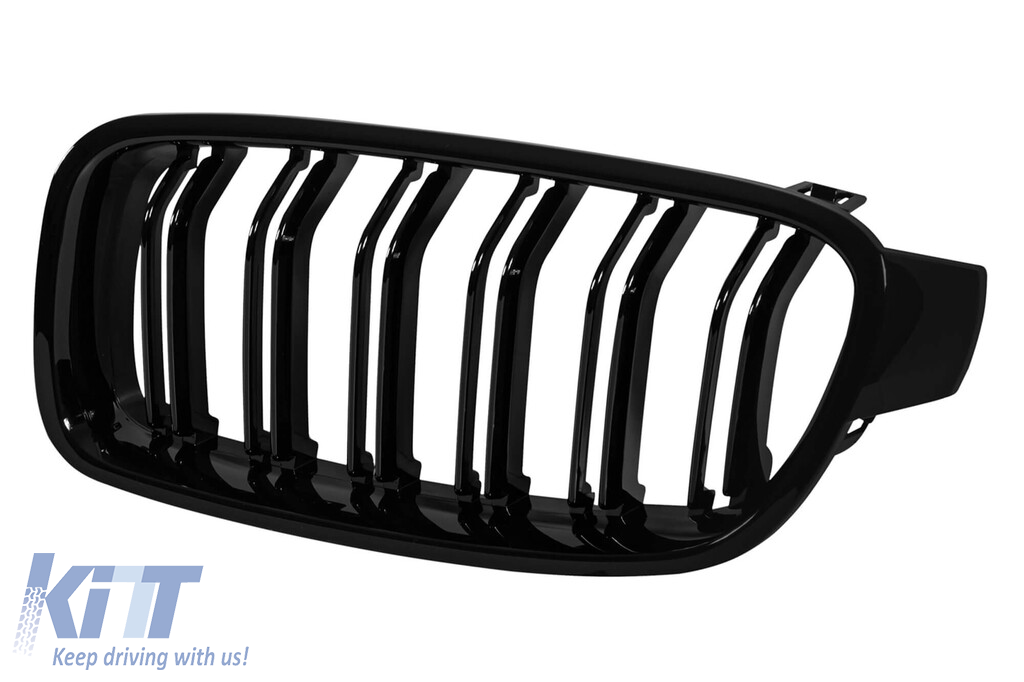 Grile rinichi cu două lamele, lucioase, negre, potrivite pentru BMW Seria 3 F30 Sedan, F31 Touring 2011-2019 Performance AutoTuning