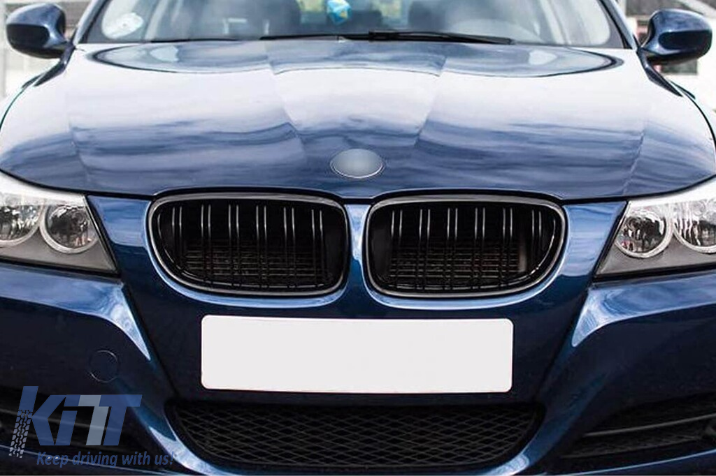 Grile rinichi tip M3 cu nervuri duble, lac negru potrivit pentru BMW Seria 3 E90 sedan, E91 break 2008-2012 Performance AutoTuning