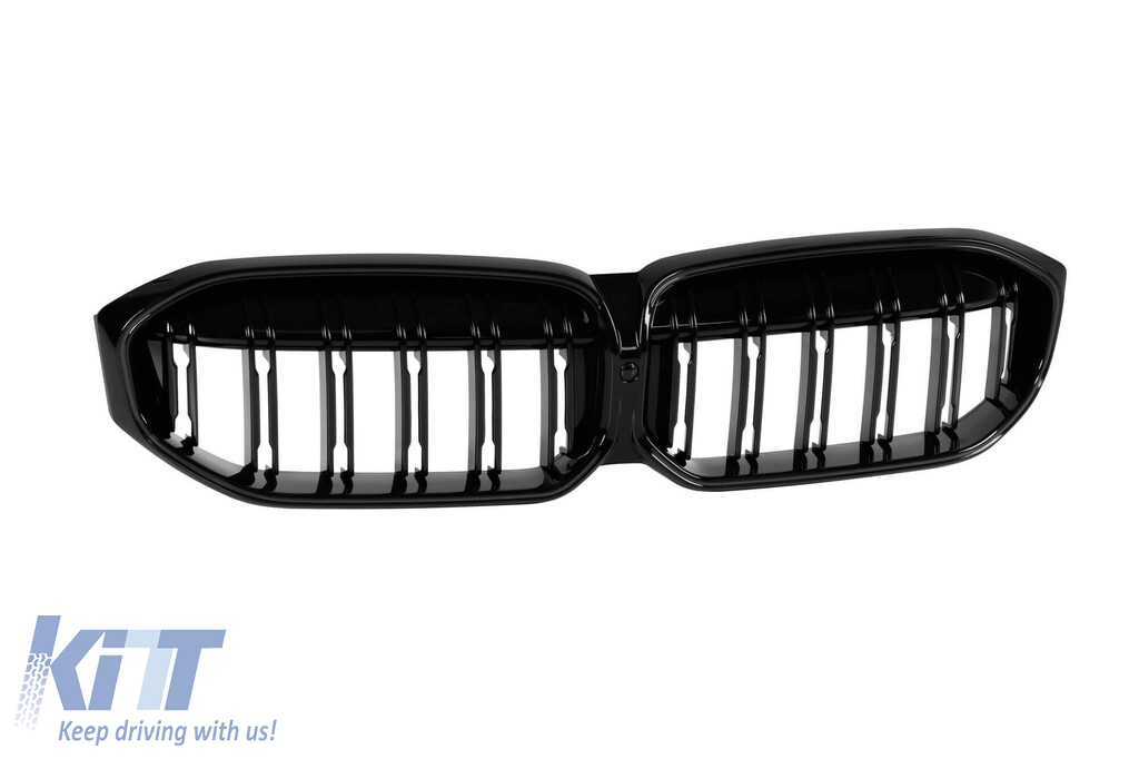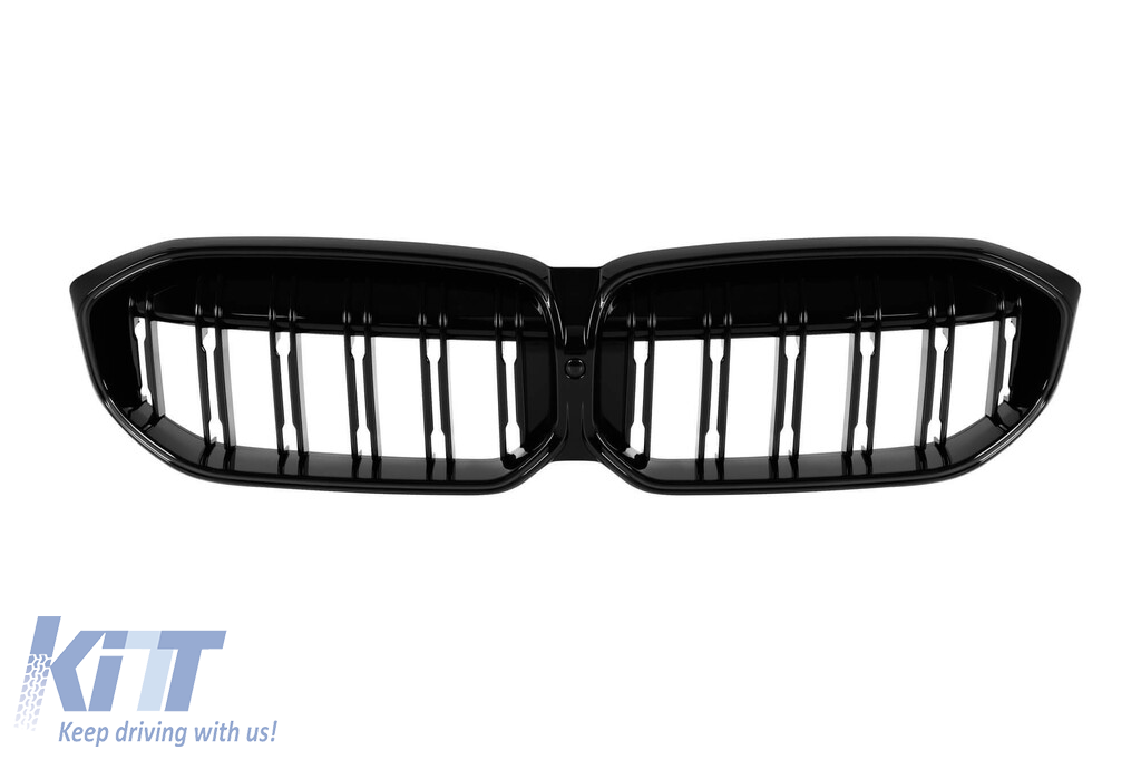 Grilele de rinichi iluminate Iconic Glow cu lamele duble potrivite pentru BMW Seria 3 G20, G21 după 2023, lac negru Performance AutoTuning
