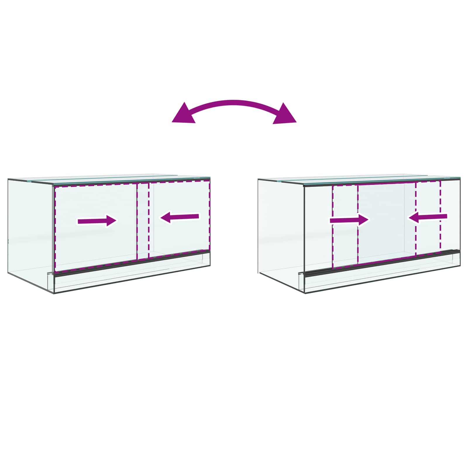 Acest habitat din sticlă pentru reptile și amfibieni oferă un cadru elegant pentru animalele tale de companie, gândit pentru confortul și vizibilitatea lor. Cu un stil modern, se potrivește perfect în orice mediu, oferind un aspect fain datorită sticlei transparente. Textura netedă și liniile clare îi dau o notă sofisticată, fiind o alegere grozavă pentru cei care doresc să observe animalele de aproape.