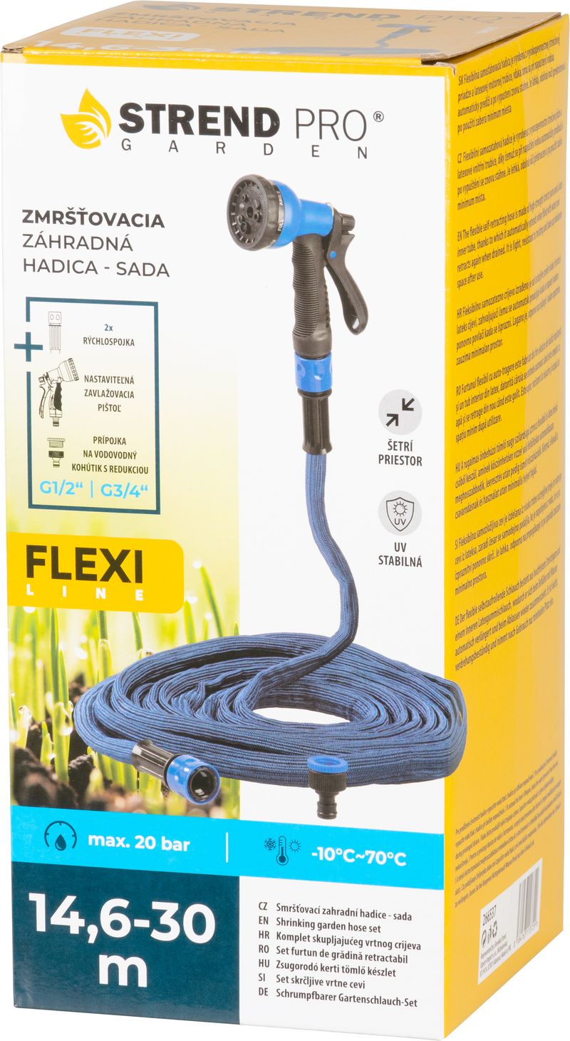 Strend Pro Garden FLEXI – zmršťovacia záhradná hadica (14,6-30 m) + pištoľ