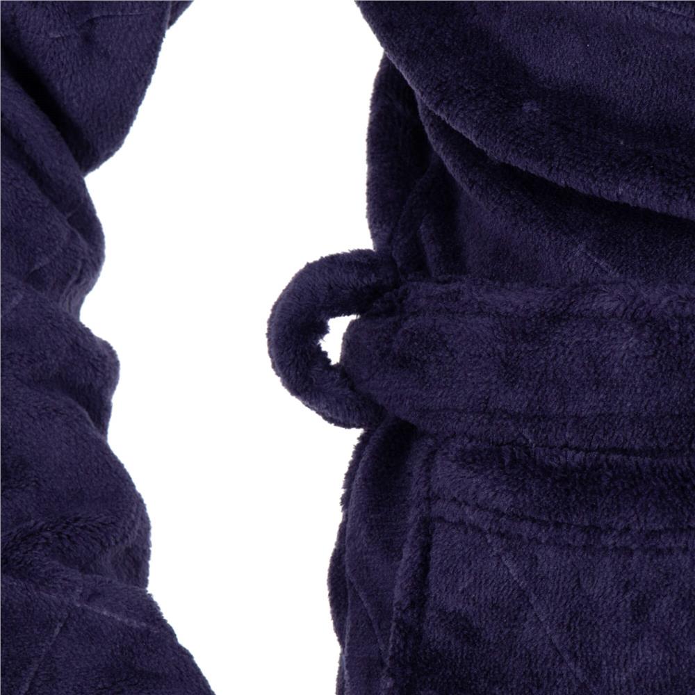 Acest halat barbati M/L ofera o senzatie placuta de caldura si libertate de miscare. Gulerul inalt adauga un plus de confort, iar buzunarele frontale sunt practice pentru telefon, telecomanda sau alte obiecte mici. Cureaua din talie permite ajustarea usoara pentru o potrivire comoda.