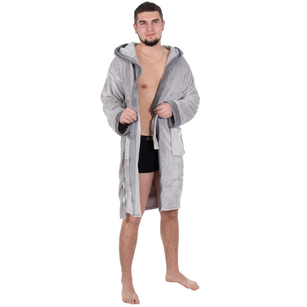 Halat de baie pentru barbati pana la genunchi, gluga mare, marimea M/L, gri Household NewTrend