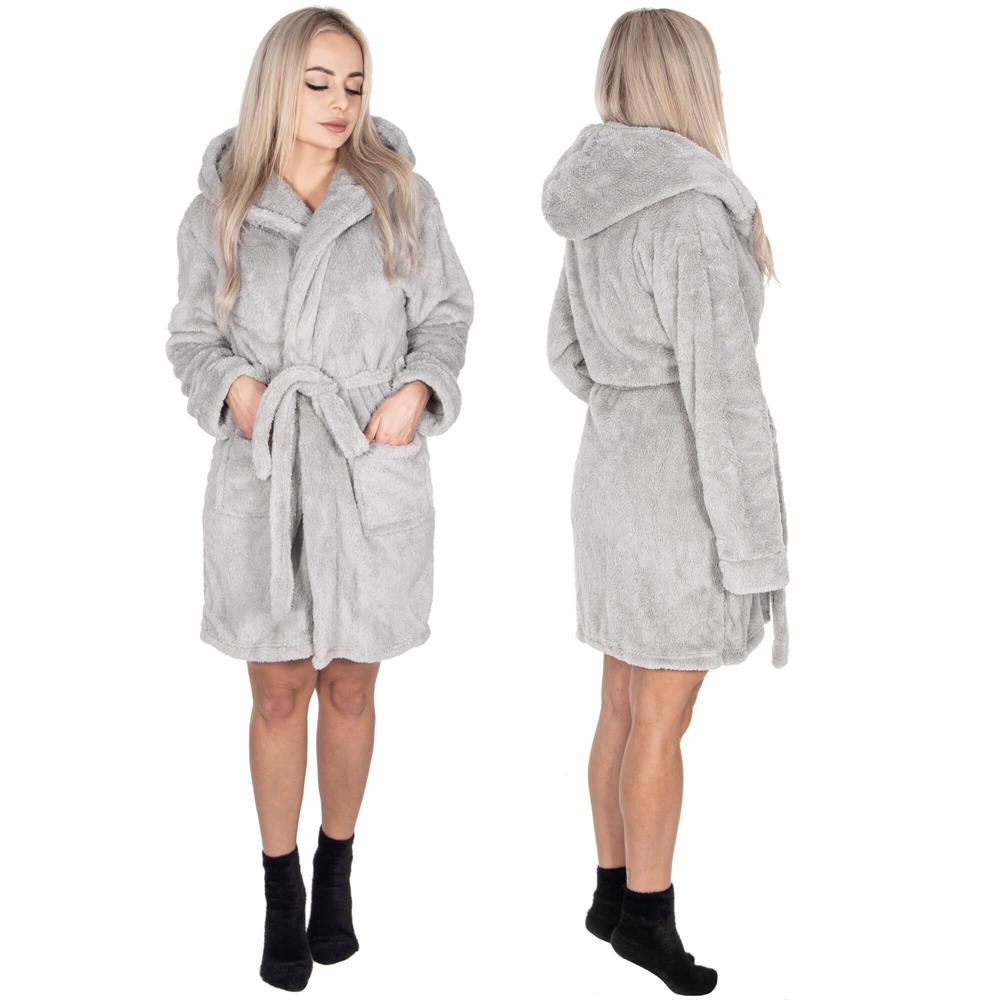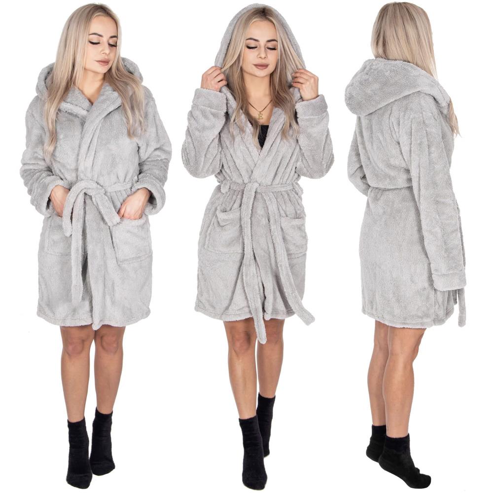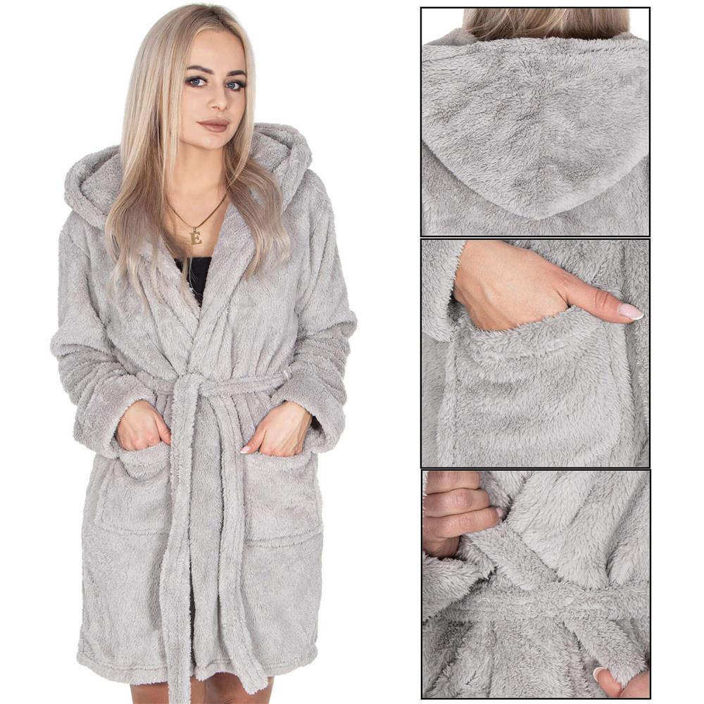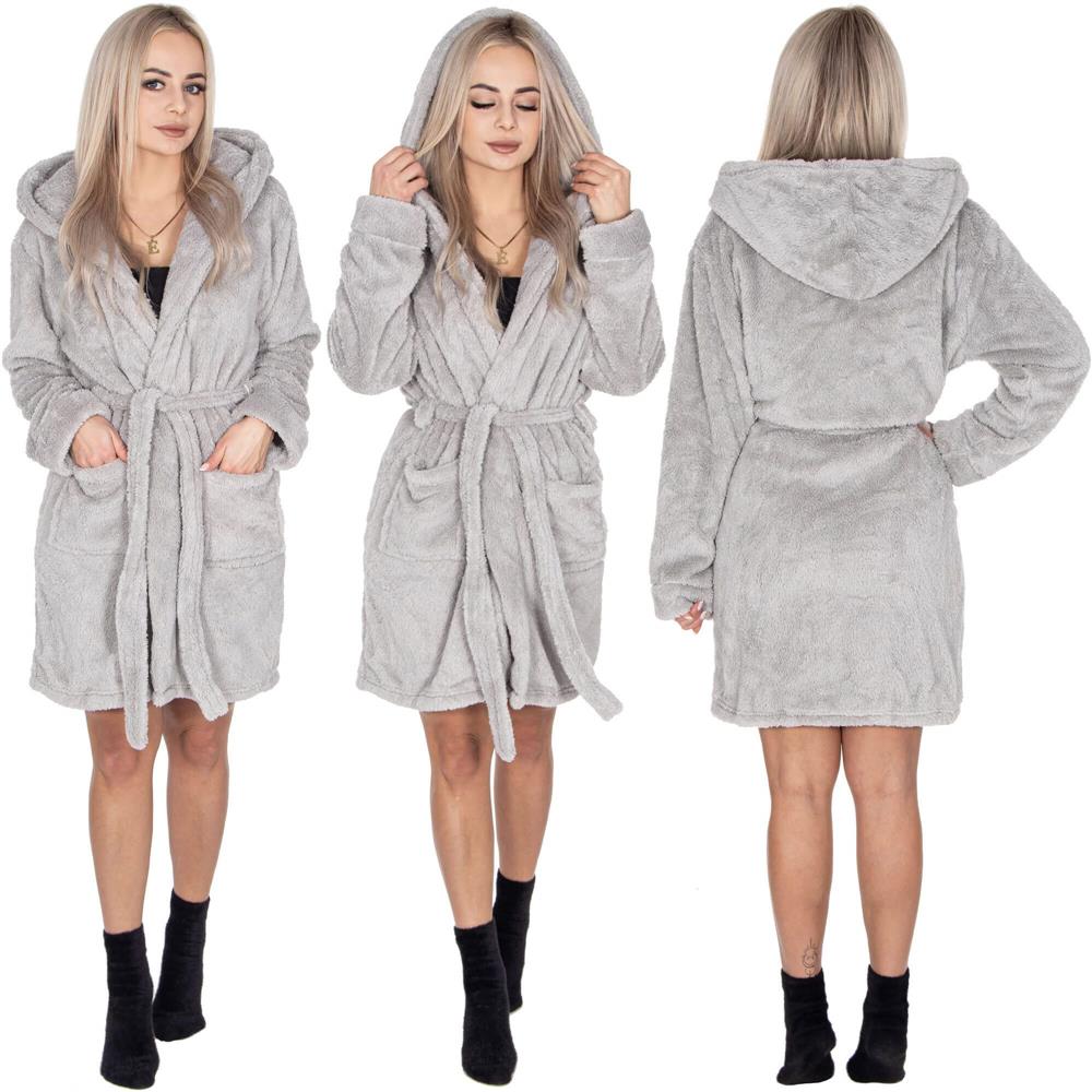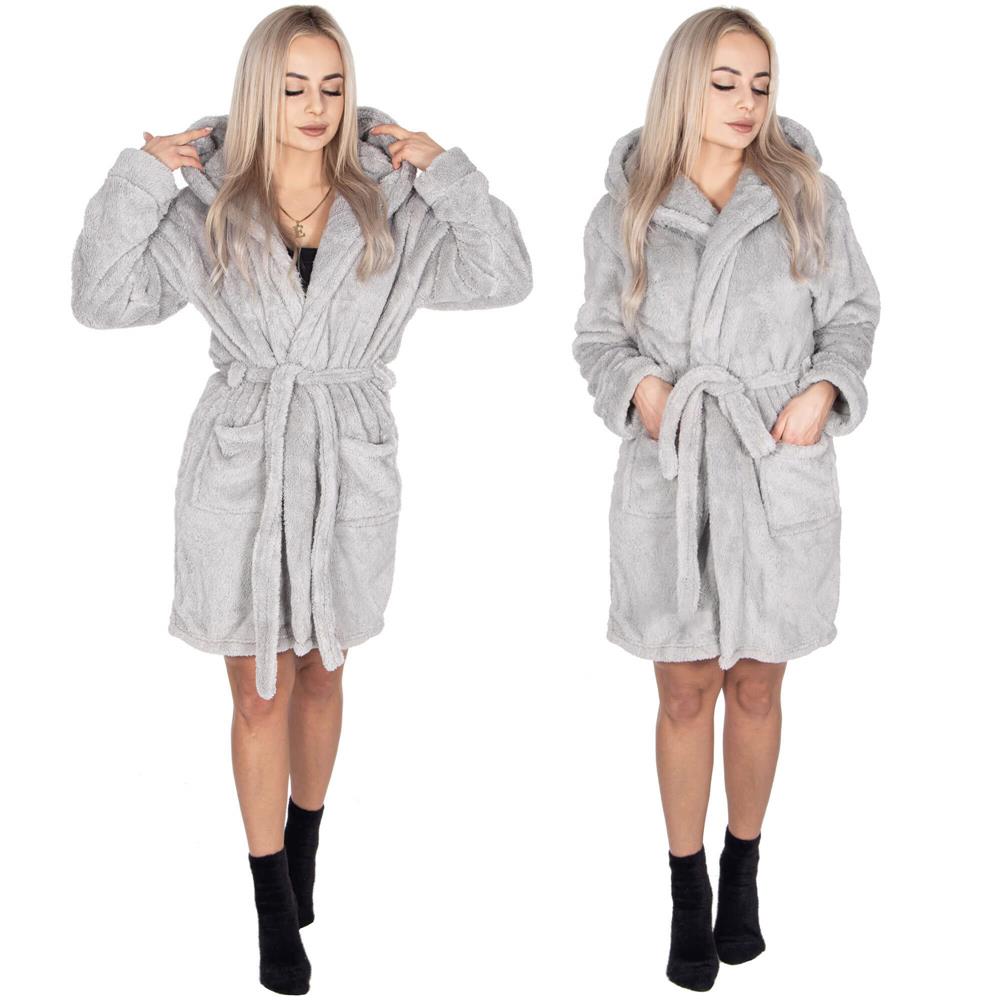 Halat de baie pentru femei pana la genunchi, cu gluga, marimea S/M, gri Household NewTrend