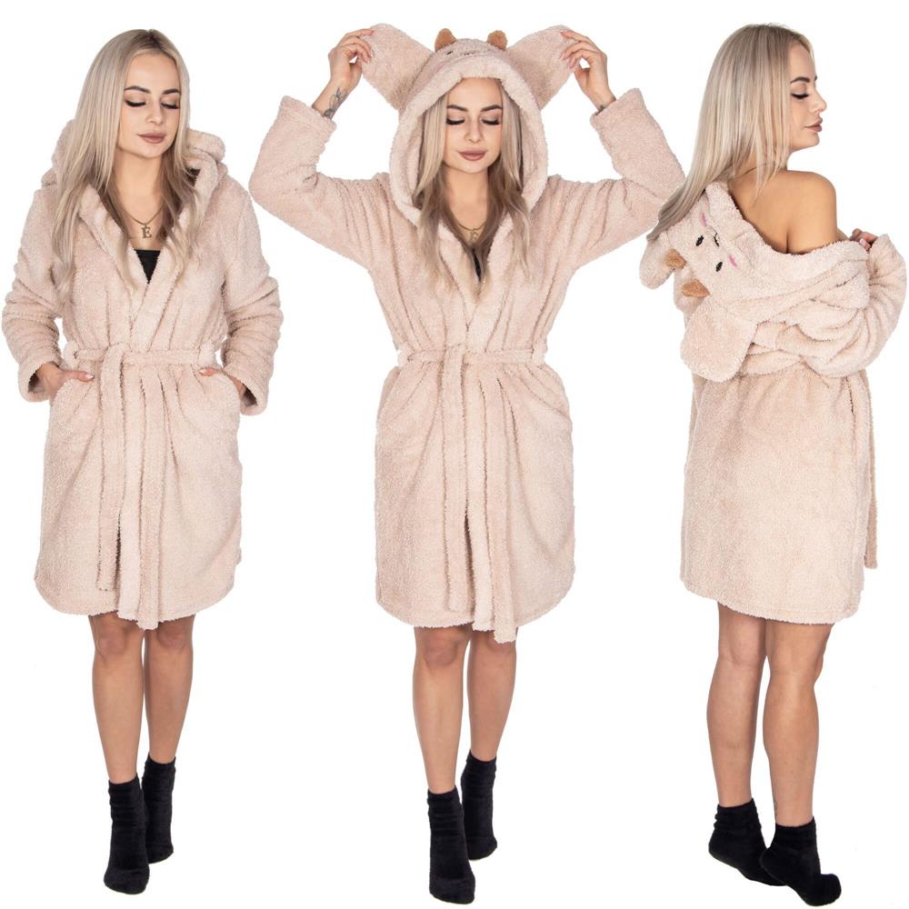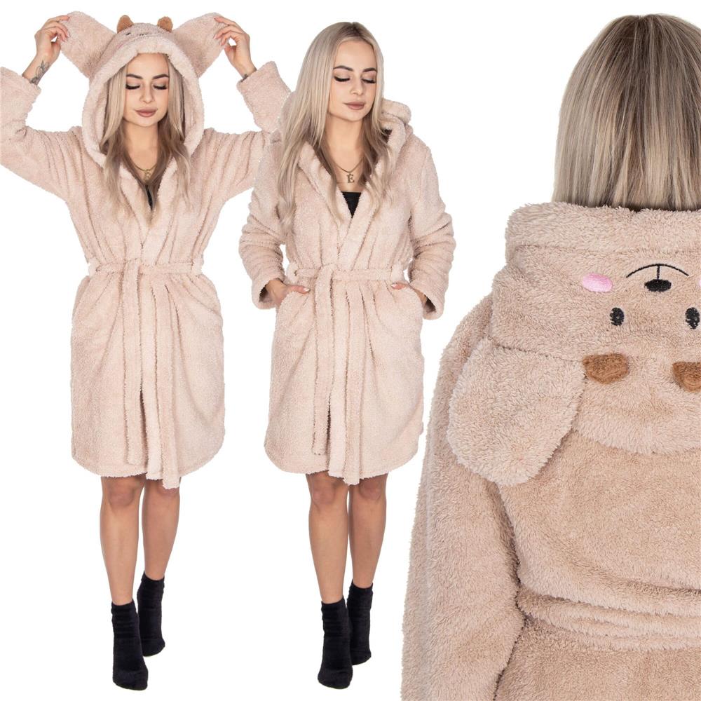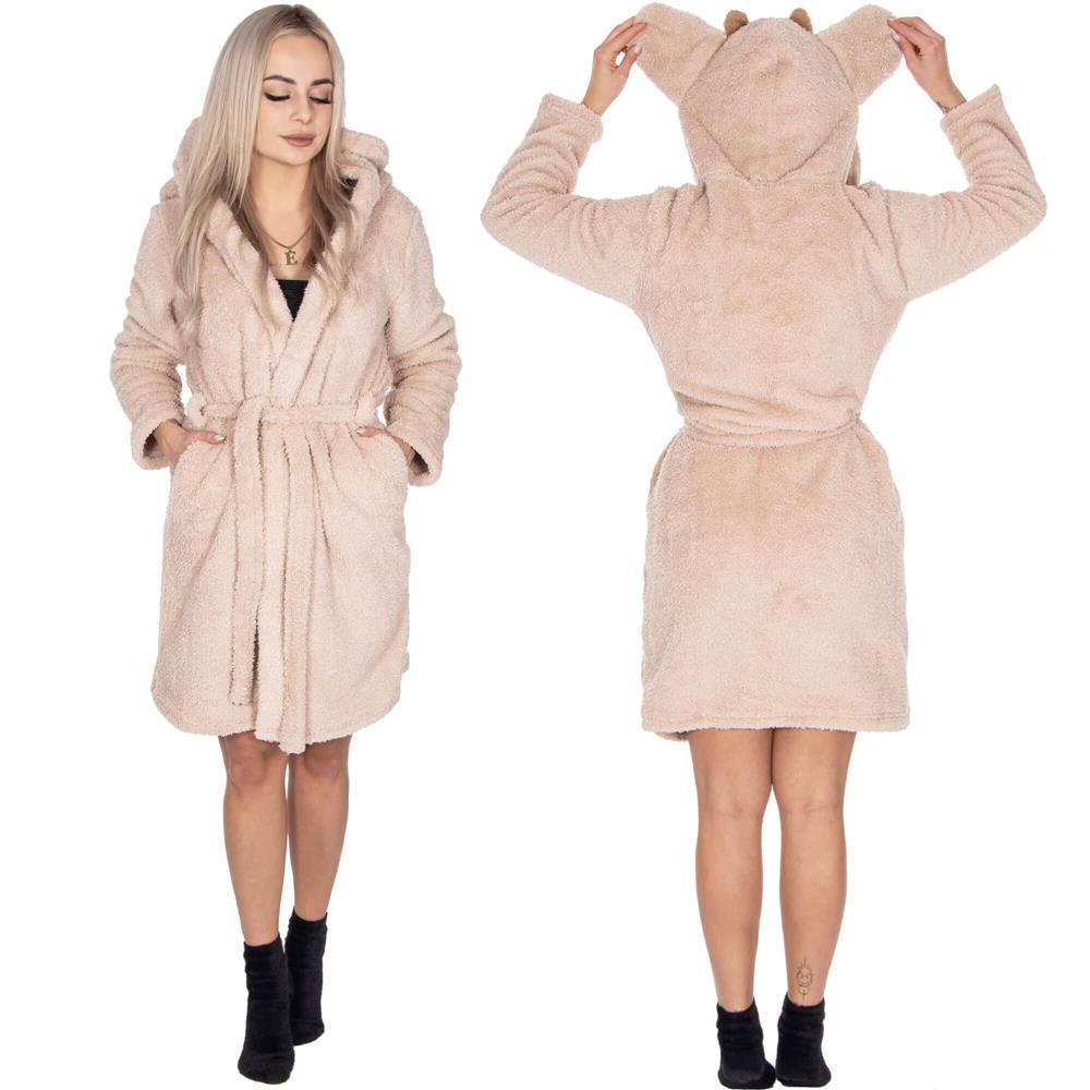 Halat de baie pentru femei pana la genunchi, gluga cu urechi , marimea S/M, bej Household NewTrend