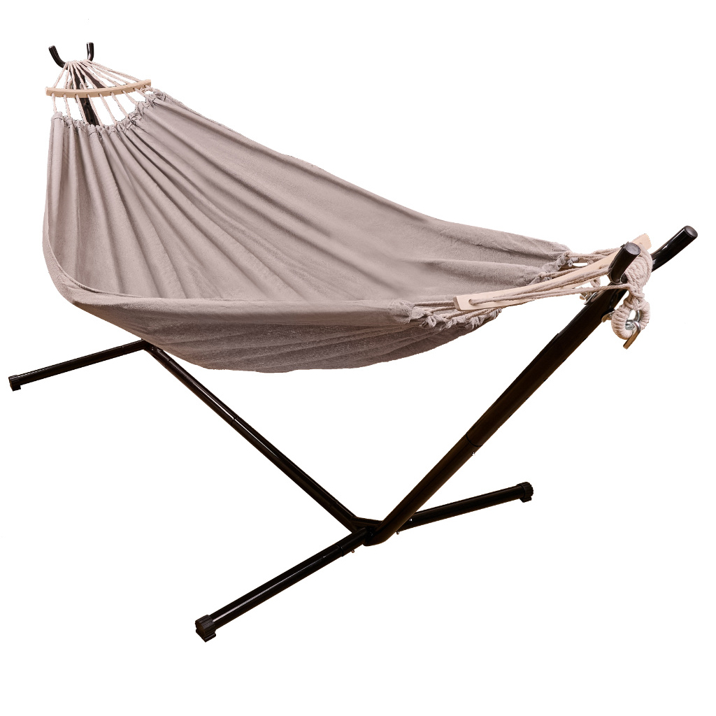 Hamac cu suport metalic, material textil 210x153 cm, cadru 247x133x104 cm, negru si gri Household NewTrend