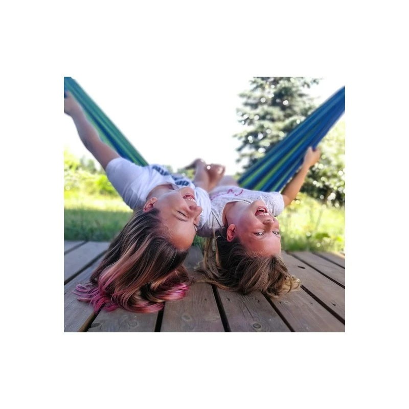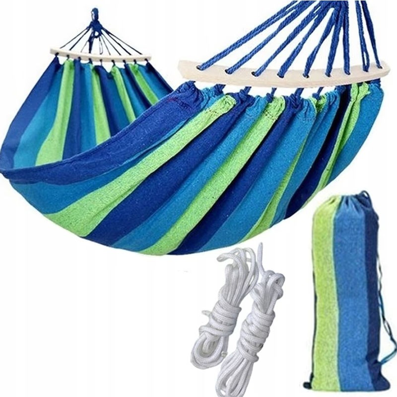 Hamac dublu pentru 2 persoane 150x200 cm, cu tije din lemn, 200 kg, verde/albastru
