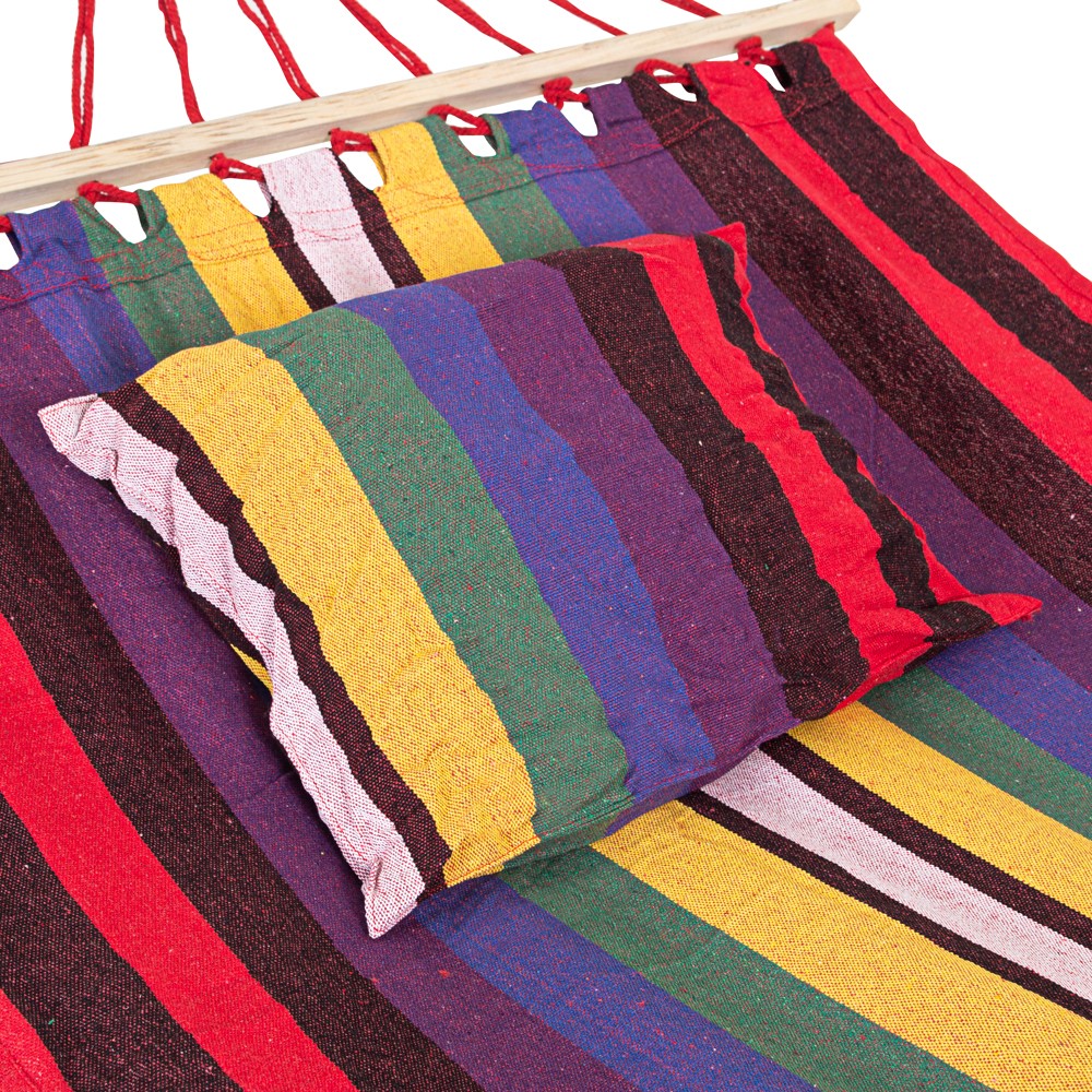 Hamac inSPORTline Lenson este un hamac de calitate realizat dintr-o tesatura moale si confortabila. Materialul confortabil, dar extrem de durabil, asigura o durata lunga de viata si o utilizare sigura. Acesta este un hamac pentru o singura persoana cu o limita de greutate de 120 kg. Suprafata utila este de 110 x 200 centimetri, ceea ce face ca hamacul sa fie potrivit pentru persoane de diverse inaltimi. Acest hamac este usor de montat tot ce trebuie sa faceti este sa atasati hamacul la doua puncte fixe. Traversele din lemn ofera o ranforsare suplimentara si impiedica inodarea cablurilor. Hamac inSPORTline Lenson este perfect nu numai pentru relaxare in gradina dvs., ci si pentru dormit in aer liber.