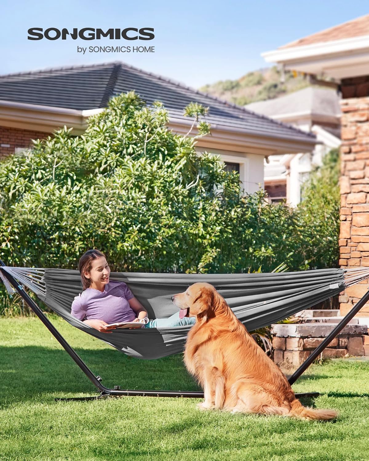 Hamac SONGMICS cu cadru metalic reglabil, 240 kg, 300x90x95 cm, gri