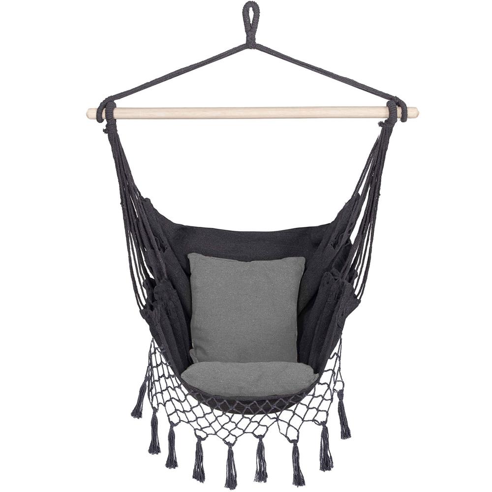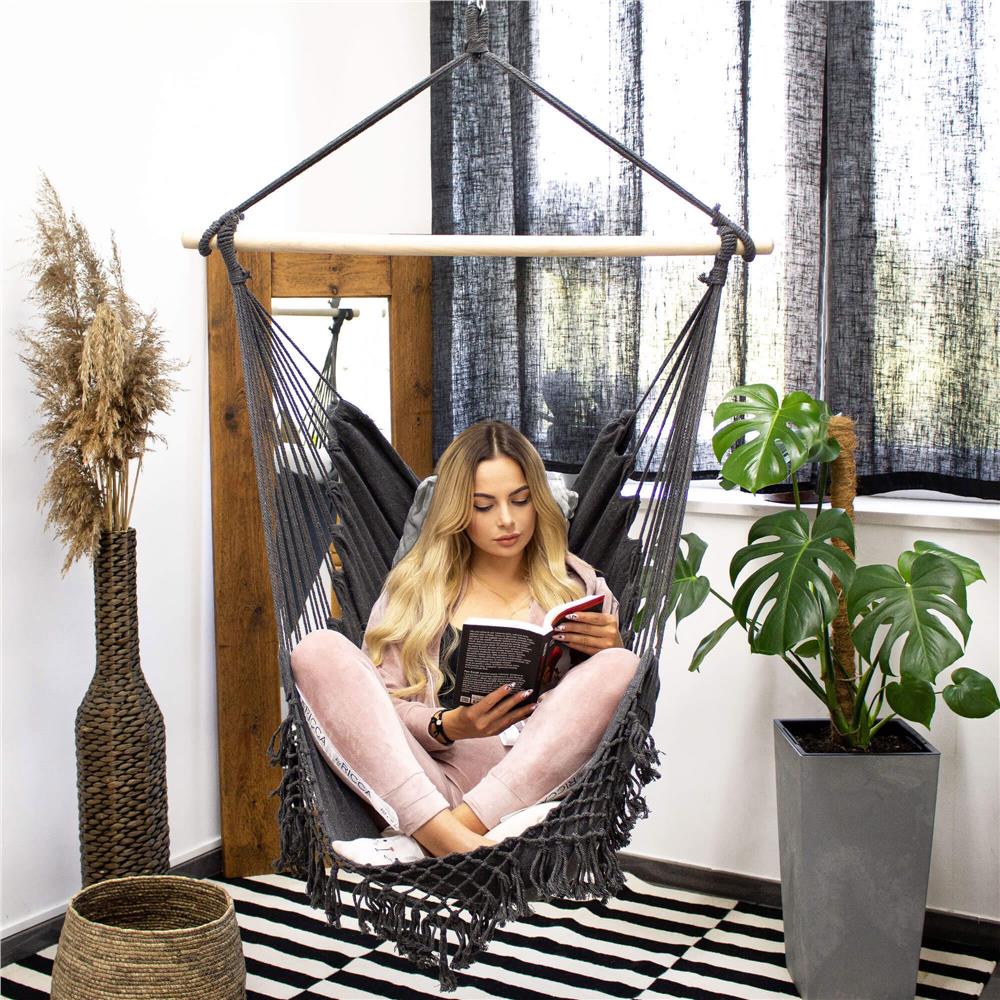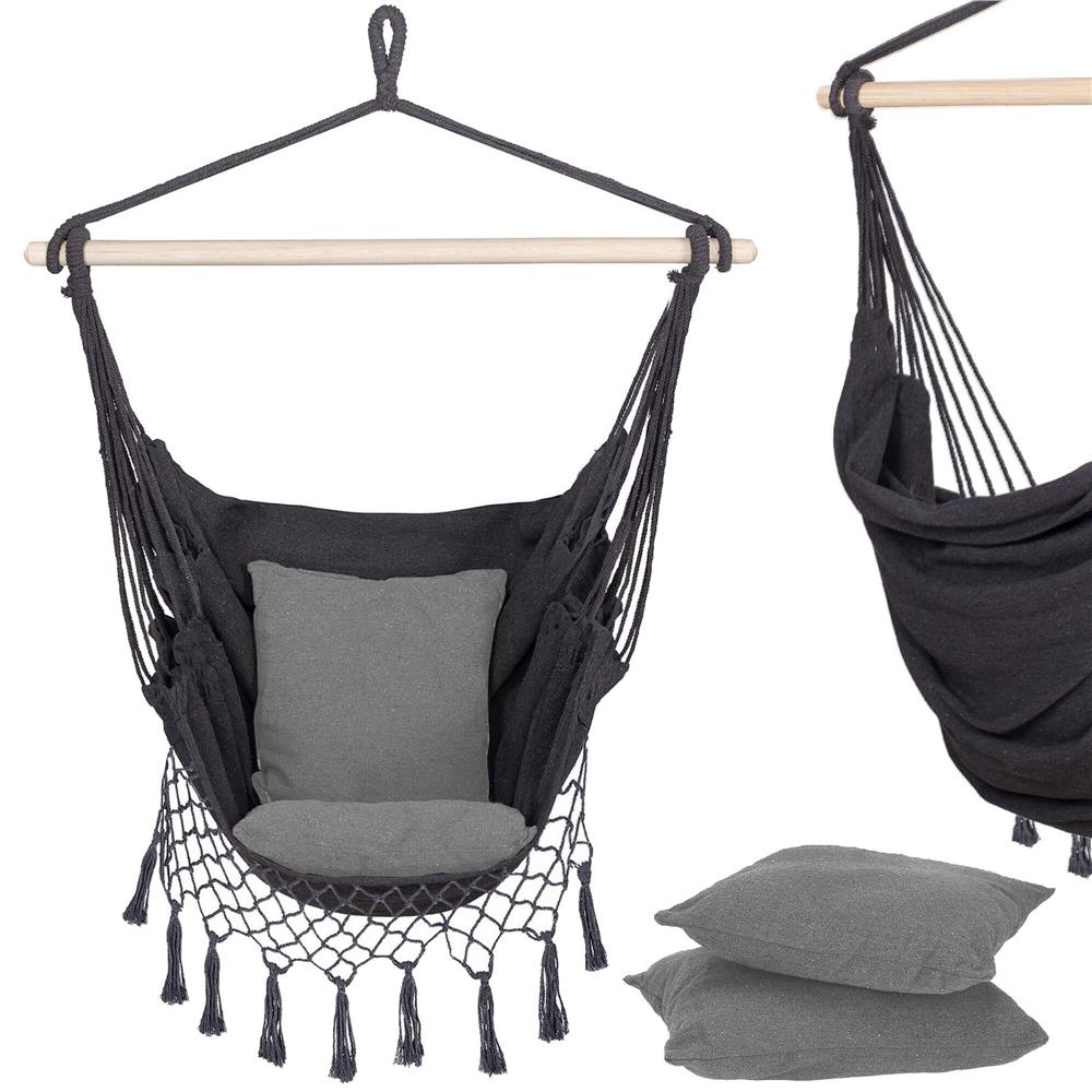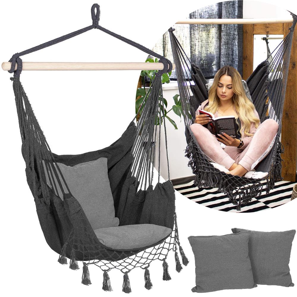 Hamac suspendat tip leagan pentru casa si gradina, gri, cu 2 perne, 150 kg
