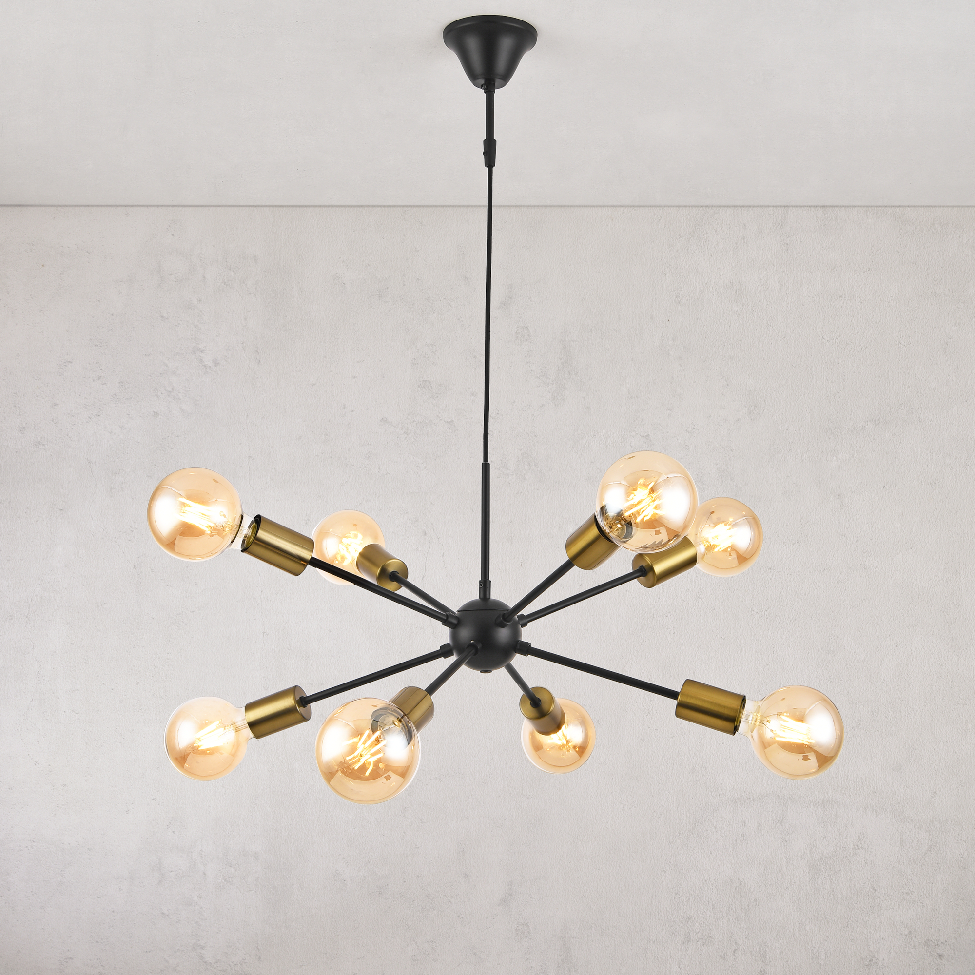 Hängeleuchte Amiens 8-Flammig E27 Schwarz / Messingfarben [lux.pro]