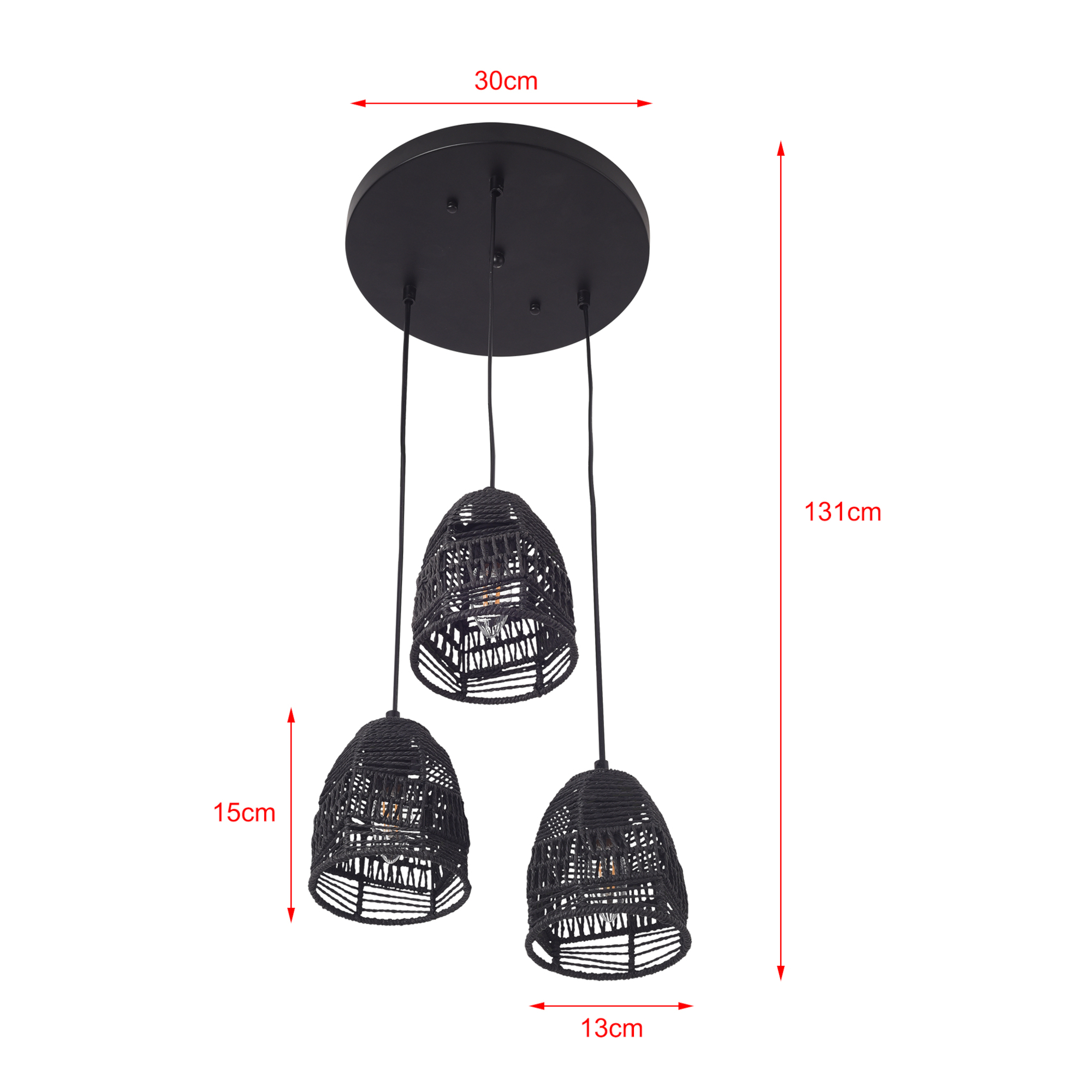 - Lampenfassung: 3 x E14, max. 40W (Lieferung ohne Leuchtmittel)