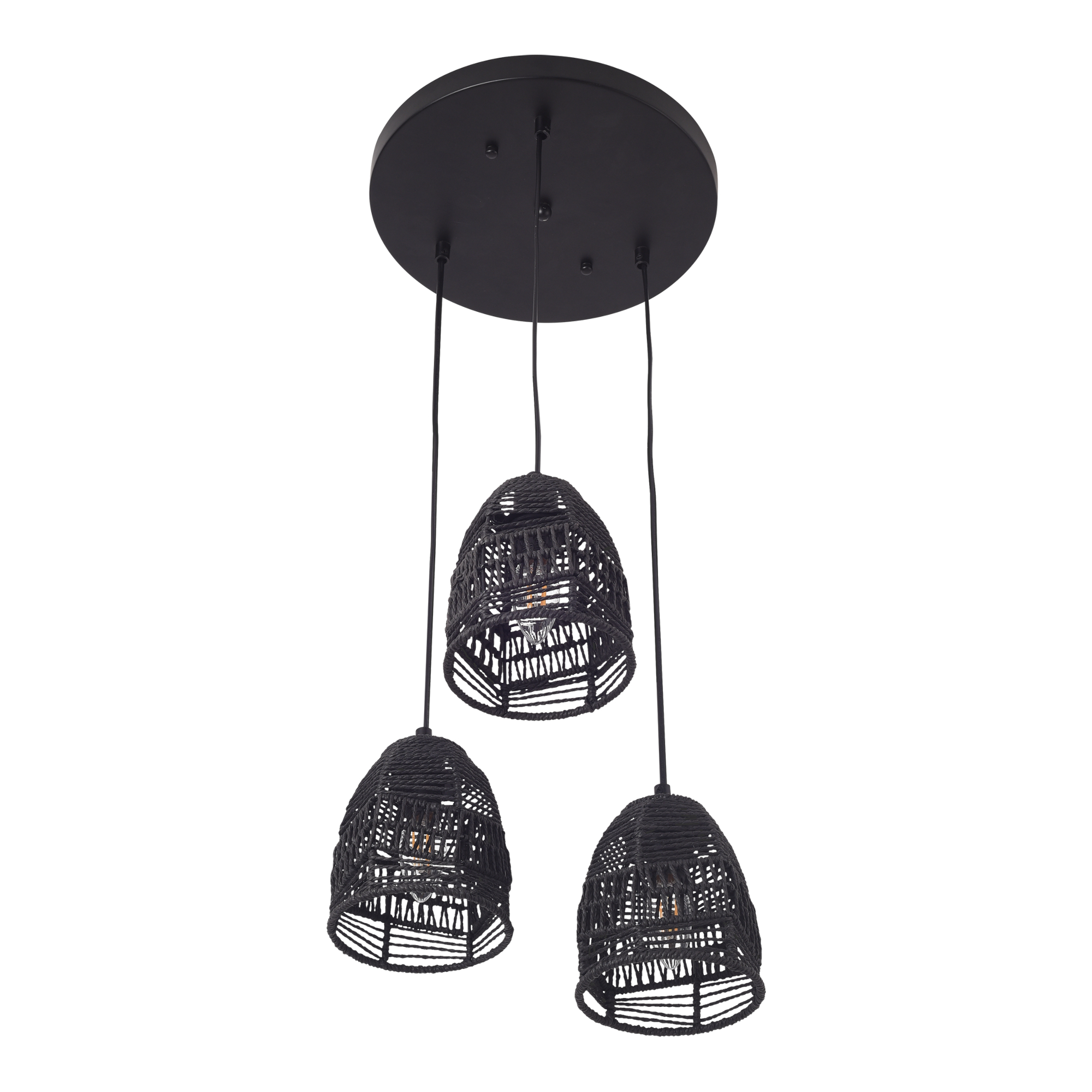 Die Pendelleuchte verfügt über drei ästhetische Lampenschirme, die sich nahtlos in das Gesamtdesign der Leuchte einfügen. Jede Lampenfassung hält ihr jeweiliges Leuchtmittel sicher an seinem Platz und garantiert eine zuverlässige Funktion.