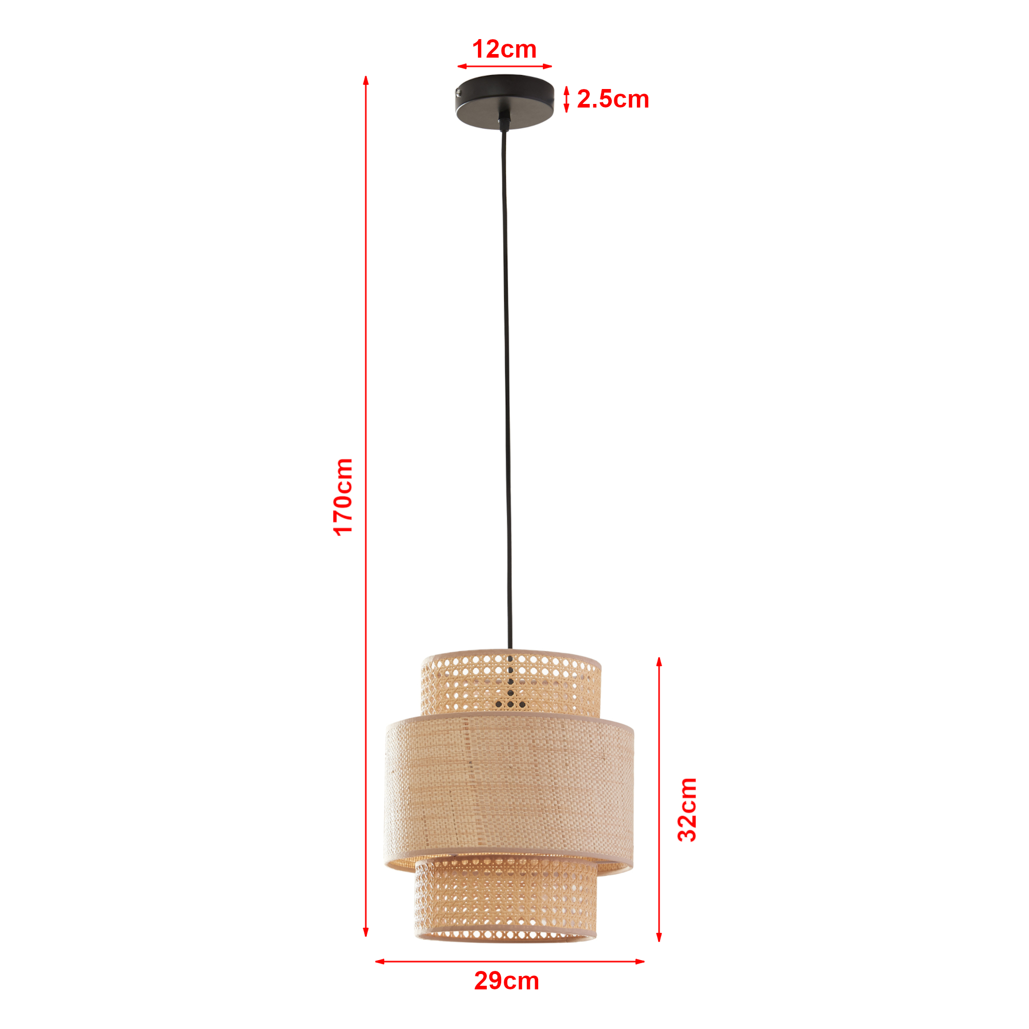 - Deckenbefestigung (HxØ): 2,5 x 12 cm