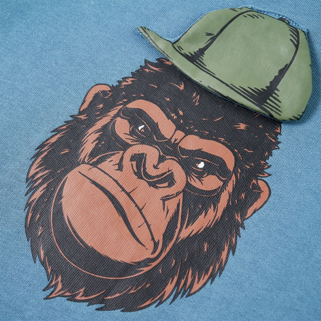 Acest bluzon pentru copii are mâneci lungi, decolteu rotund și margini cu model din elastic împletit la manșete, în jurul gâtului și în partea inferioară. Bluzonul pentru copii prezintă o gorilă cu șapcă. Bluzonul pentru copii este confecționat dintr-un material moale care include 92% bumbac și 8% poliester, pentru confort și respirabilitate. Căptușeala moale din fleece oferă un plus de căldură.