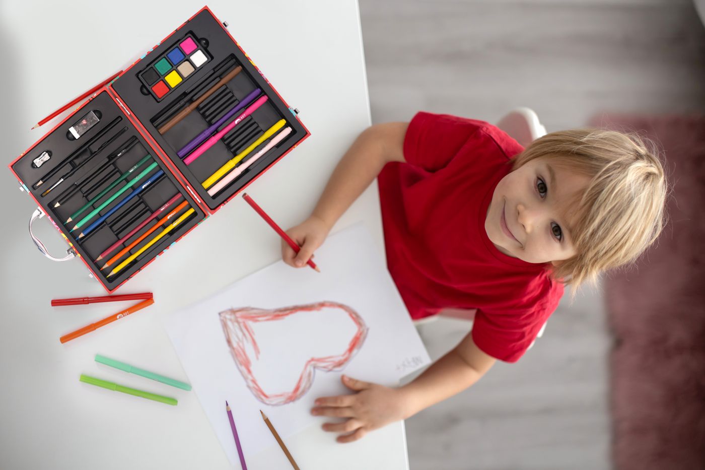 Indiferent cate culori ai, niciodata nu vor fi suficiente pentru a da viata imaginilor tale preferate! Cu Trusa de lux pentru desen, poti explora creativitatea fara limite, avand la dispozitie 50 de accesorii pentru desen si pictura, perfecte pentru a invata diferite tehnici artistice. Toate materialele sunt organizate intr-o trusa eleganta, cu maner practic, pe care o poti lua cu tine oriunde mergi acasa, la scoala sau in vacanta. Setul include 10 markere lavabile, 10 creioane colorate, 8 acuarele, 18 coli de colorat, 1 creion de desen, 1 pensula, 1 radiera, 1 ascutitoare. Un set complet, ideal pentru tinerii artisti care vor sa experimenteze, sa creeze si sa se distreze in lumea culorilor!