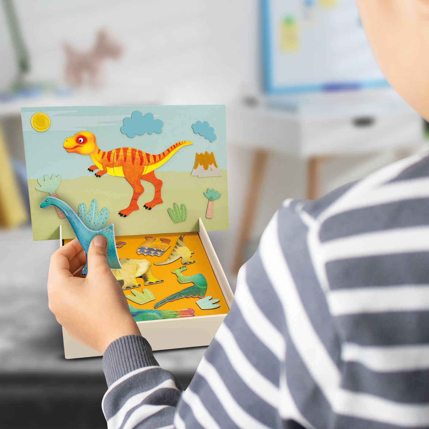O jucarie magnetica amuzanta cu 45 de magneti care ii ajuta pe copii sa descopere lumea fascinanta a dinozaurilor! Cei mici se familiarizeaza cu numele si caracteristicile acestora si se distreaza asamblandu-i dupa imaginile de pe fisele educative incluse. Jucaria stimuleaza spiritul de observatie si atentia la detalii, intrucat copiii trebuie sa combine corect partile magnetice pentru a recrea dinozaurii specifici. O activitate educativa si creativa care imbina invatarea cu distractia, perfecta pentru micii exploratori pasionati de preistorie!