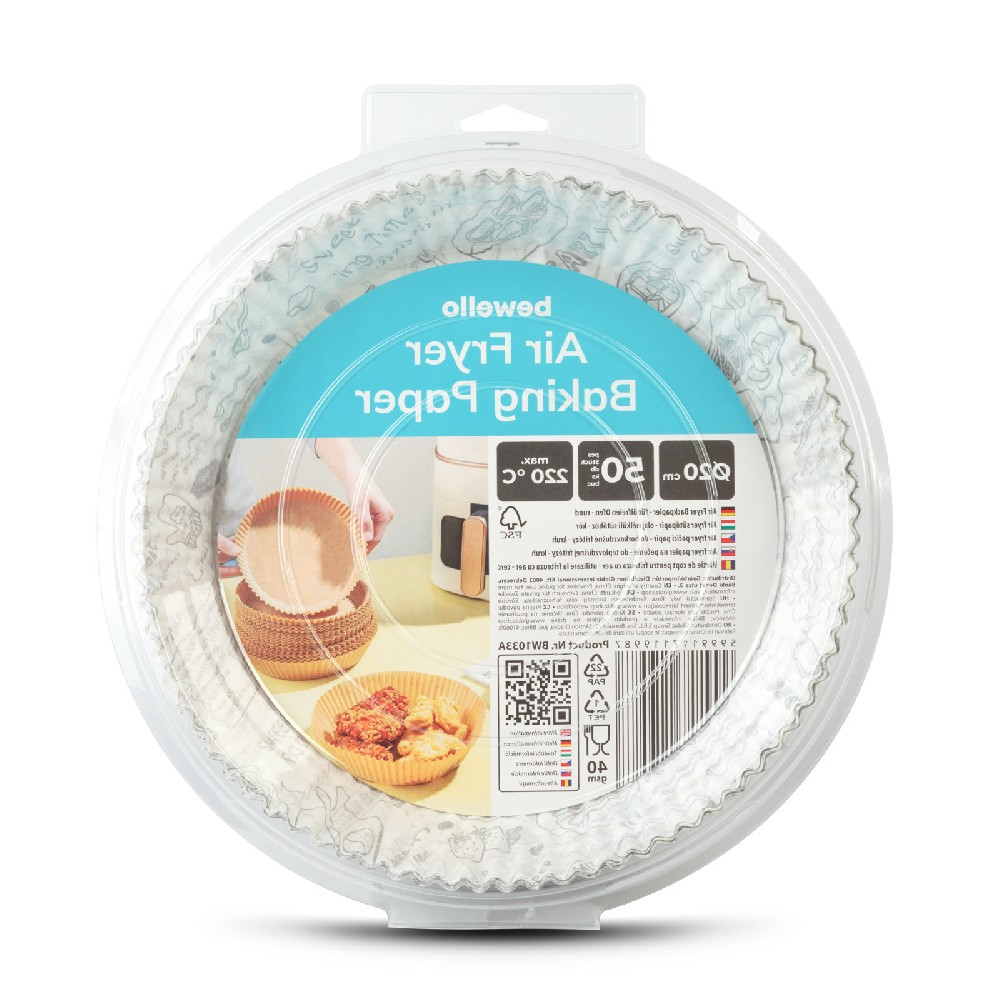 Această hârtie de coacere special concepută pentru air fryer, cu un diametru de 20 cm și formă rotundă, oferă o soluție practică pentru gătit. Fabricată din hârtie de 40 gsm, rezistentă la temperaturi de până la 220°C, previne lipirea și arderea alimentelor de coșul de gătit, păstrând gustul intact și reducând pierderile de mâncare. Este ideală pentru utilizare în air fryer, cuptor electric, microunde sau aparat de gătit cu aburi, fiind de unică folosință și livrată în pachete de 50 de bucăți. De asemenea, facilitează curățarea coșului, prelungindu-i durata de viață.