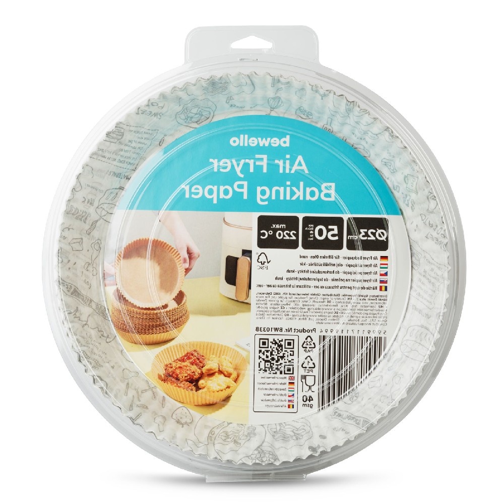 Această hârtie de coacere special concepută pentru air fryer, cu un diametru de 23 cm și formă rotundă, oferă o soluție practică pentru gătit. Fabricată din hârtie de 40 gsm, rezistentă la temperaturi de până la 220°C, previne lipirea și arderea alimentelor de coșul de gătit, păstrând gustul intact și reducând pierderile de mâncare. Este ideală pentru utilizare în air fryer, cuptor electric, microunde sau aparat de gătit cu aburi, fiind de unică folosință și livrată în pachete de 50 de bucăți. De asemenea, facilitează curățarea coșului, prelungindu-i durata de viață.