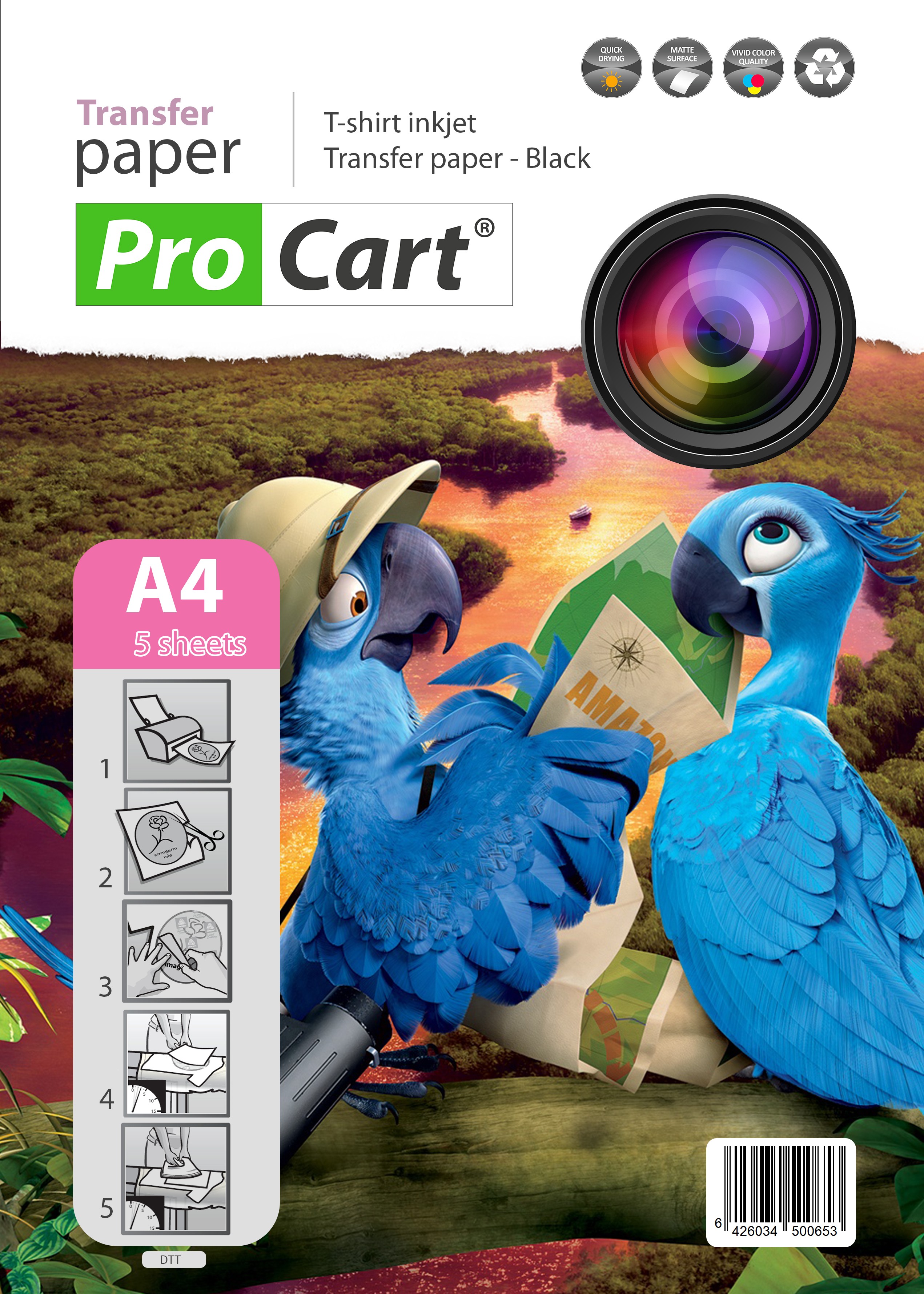 Specificatii Hârtie transfer termic A4 tricouri negre,