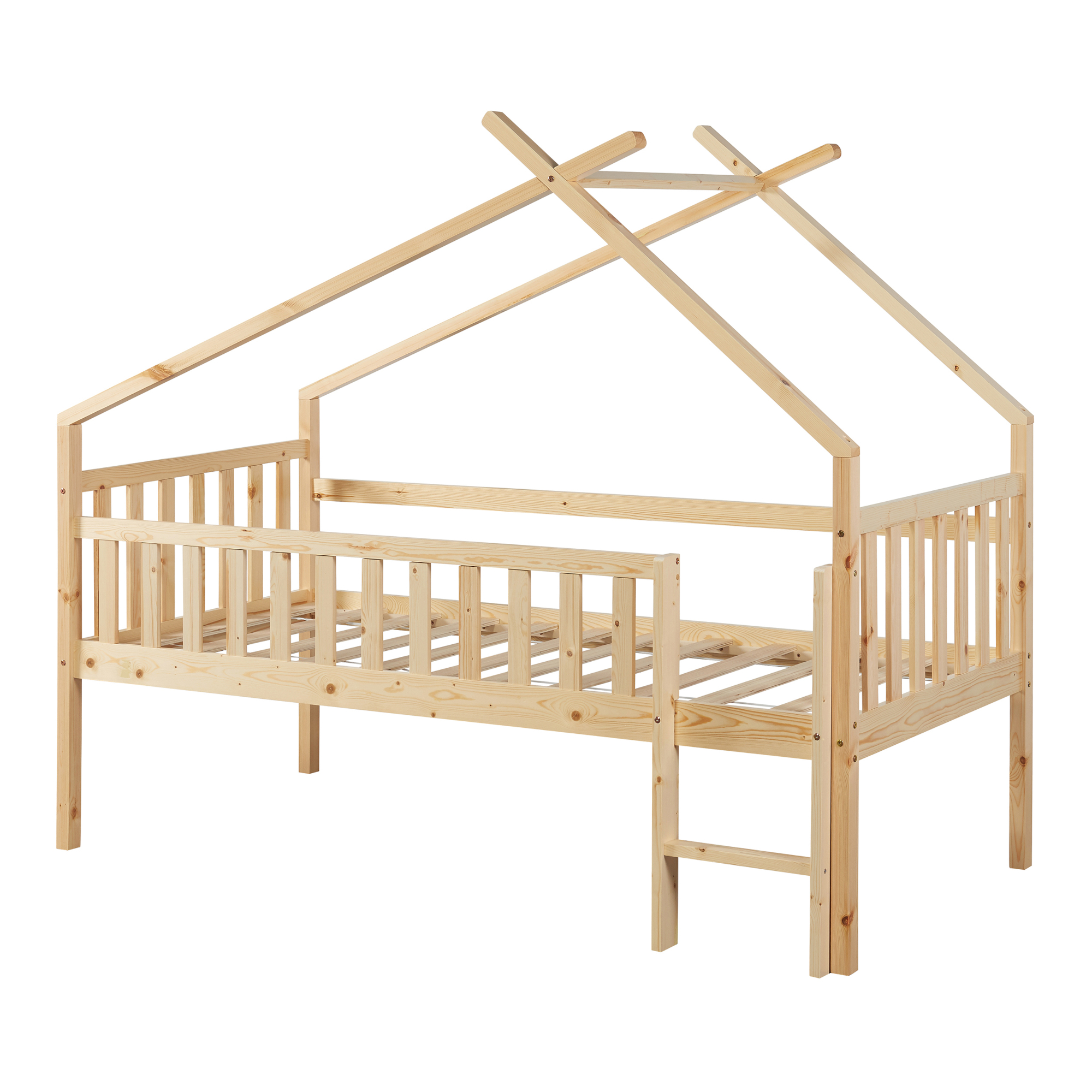 Hausbett Sotkamo 90x200cm mit Rausfallschutz Kiefernholz Natur [en.casa]