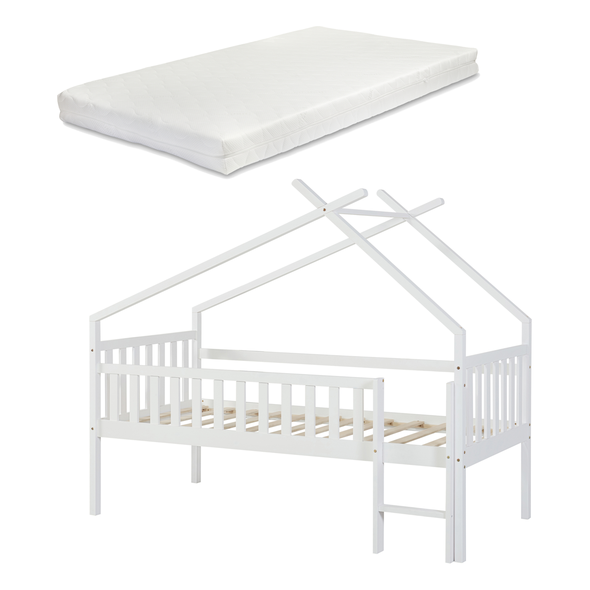 Hausbett Sotkamo mit Matratze 90x200cm mit Rausfallschutz Weiß [en.casa]