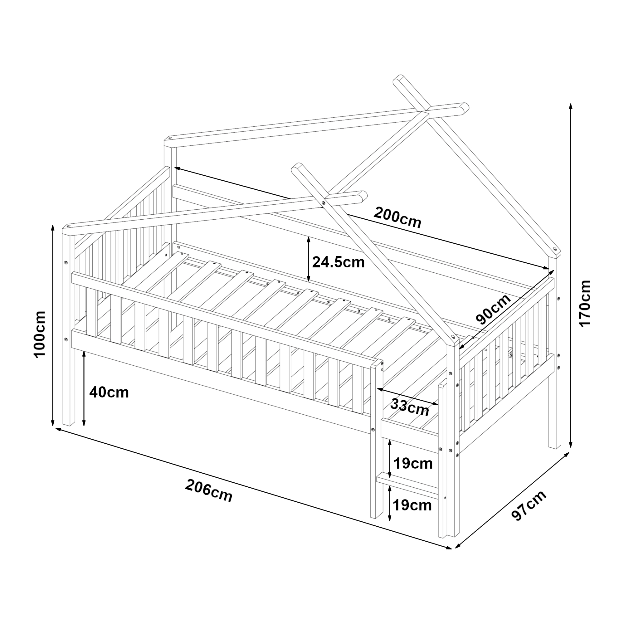 Descriere Hausbett Sotkamo mit Matratze 90x200cm mit